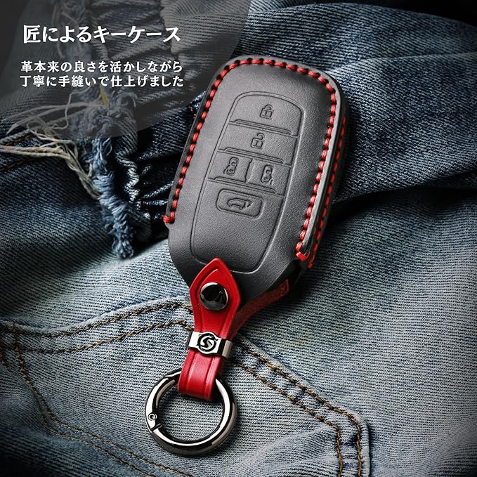 新型 VOXY 90系 キーケース ノア 90系 キーカバー アルファード ヴェルファイア 40系 トヨタ 本革 2023年 最新アクセサリー パーツ (本革5ボタン, 黒①)