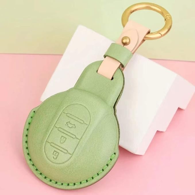 ミニクーパー MI-NI キー カバー ケースクロスオーバー(MI-NI crossover) F60 MI-NIクラブマン(MI-NI Clubman) F54 F55 F56 F57牛革素材スマート キー ケース キーカバー キーホルダー (ピンク)