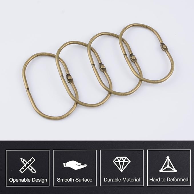 INCREWAY カーテンリング、20個楕円スライドアイレットリング 金属製開閉式ドレープリング ドレープスライドカーテンポールリング 窓用ロッド シャワーカーテン用フック 内径1.38インチ ブロンズ