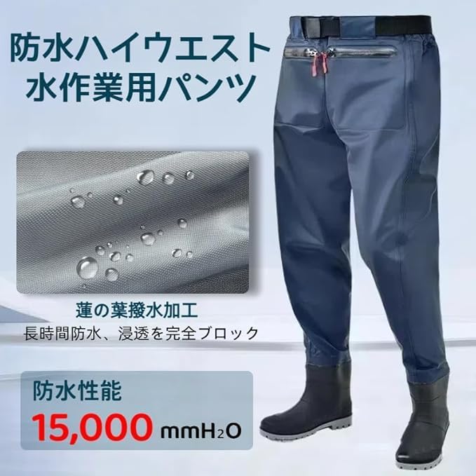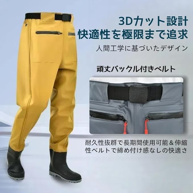 [WhaRainle] 【2025年のNEWスタイル】防水 ウエストハイ ウェーダー パンツ 胴長 長靴 防刺穿 厚底 強化ベルト 透気 快乾 軽量 ワークマン 男女兼用 防災グッズ 簡単着脱 川 海 渓流 釣り アウトドア 作業用