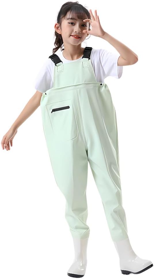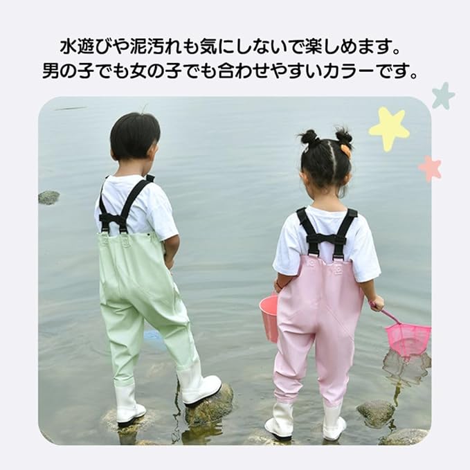 [YMSTco] 子供用 ウェーダー チェストハイウェーダー キッズ 胴付き長靴 男女兼用 可愛い ショルダーベルト 防水 怪我防止 釣り用スーツ 水遊び サロペット