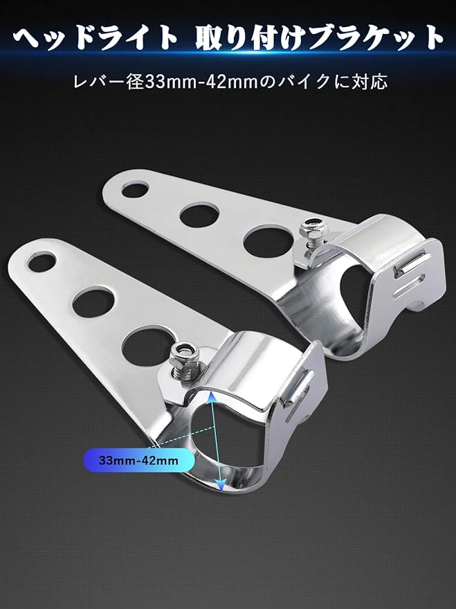 larggoods ヘッドライト 取付用 ブラケット ステー 33mm-42mm対応 本田 スズキ ヤマハ オートバイ 汎用 フロントフォーク ステー マウントブラケット シルバー ステンレス鋼 調節可能 左右2個セット