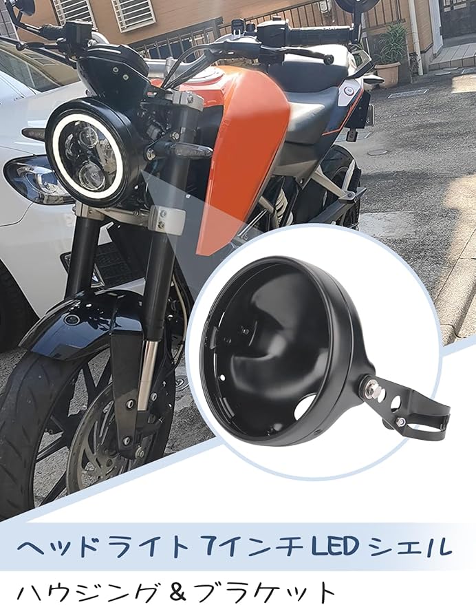 ☕️【適用車種】ヘッドライトシェルは、フォークチューブが約30〜40mmのモーターサイクルに適しています。 ホンダCB400 / CB1300 / CB250 / CB600F / CB919ホーネット/スズキ/ヤマハ/ハーレーまたは7インチのヘッドライトを装備した他のオートバイ。