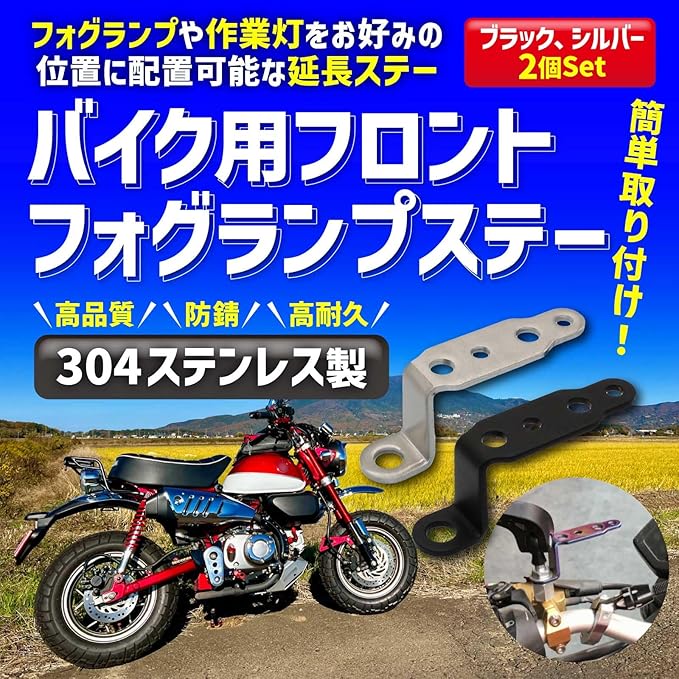 ✅【穴あけ不要高耐久フォグランプステー】バイク用フロントフォグランプを確実に固定するためのフォグランプステーになります。安定した照射でオートバイのライディングをサポートします。