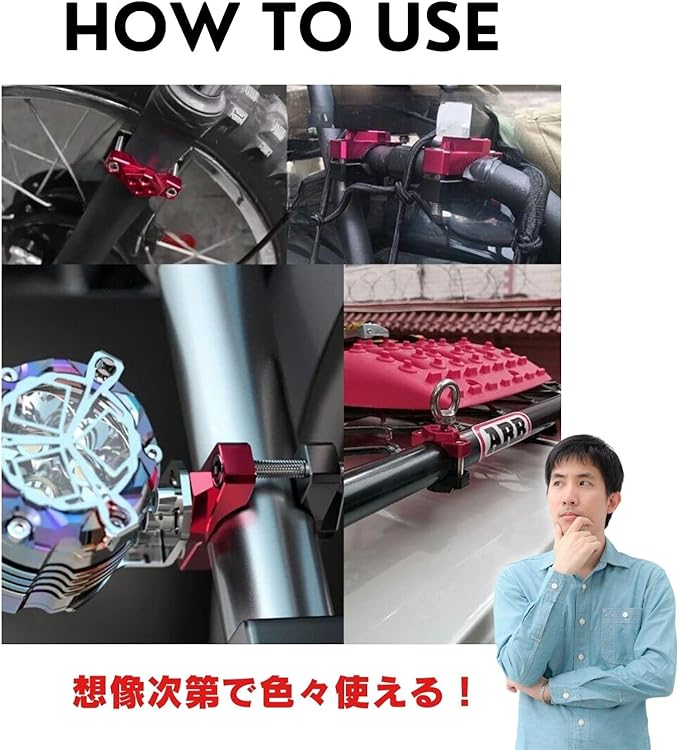 【多機能固定】フォグランプ、作業灯、投光器、デッキライトの固定はもちろん、カメラ、GPSデバイス、携帯電話ホルダーなどの電子機器の取り付けにも最適です。