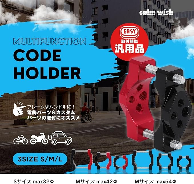 calm wish バイク フォグ ランプ ステー stay パイプ クランプ 自転車 汎用 バー 固定 金具 ハンドル ホルダー ブラック 54mm 2個