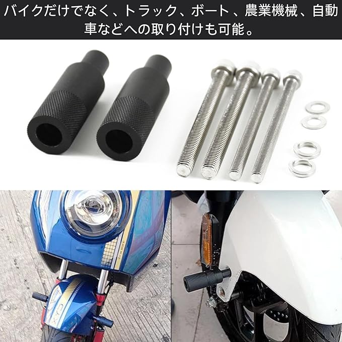 多様な用途に対応:バイクだけでなく、トラック、ボート、農業機械、自動車などへの取り付けも可能。幅広い用途でお使いいただけ、取り付け用のスクリューワッシャーや便利な六角レンチもセットになっています。