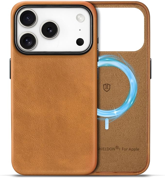 SHIELDON iPhone17Pro 対応 ベーシックケース 本革レザー 6.3インチ 5G 薄型 ワイヤレス充電対応 磁気充電可 背面保護 軽量 滑り止め 指紋防止 耐久性 カメラ保護 携帯便利 アイホン 17プロ 対応 スマホカバー 2025年発売 レトロライトブラウン
