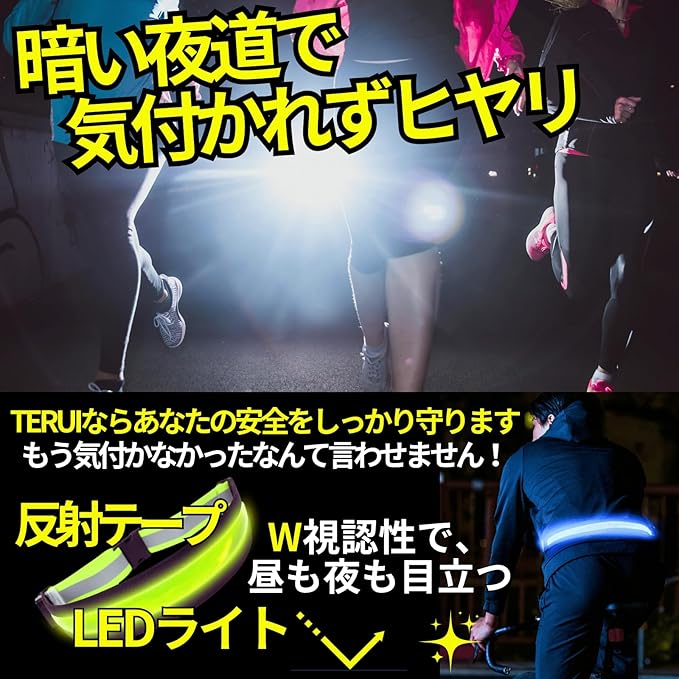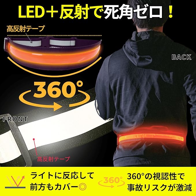【多彩な用途】ナイトランはもちろん、サイクリング、オートバイ、ウォーキング ライト、ジョギング、通勤通学などで使用可能 ベルトやタスキのように肩から掛けたり、鞄やリュックに巻付けるなど使い方も無限大