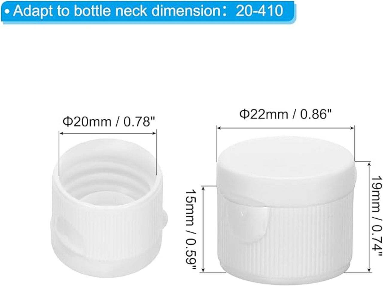仕様: カラー: ホワイト; 素材: PPプラスチック; カバー付き高さ: 19mm/ 0.74"; カバーなしの高さ: 15mm/ 0.59"; 内径: 20mm / 0.78"; 外径: 22mm / 0.86"; パッキングリスト: 24個のボトルキャップ