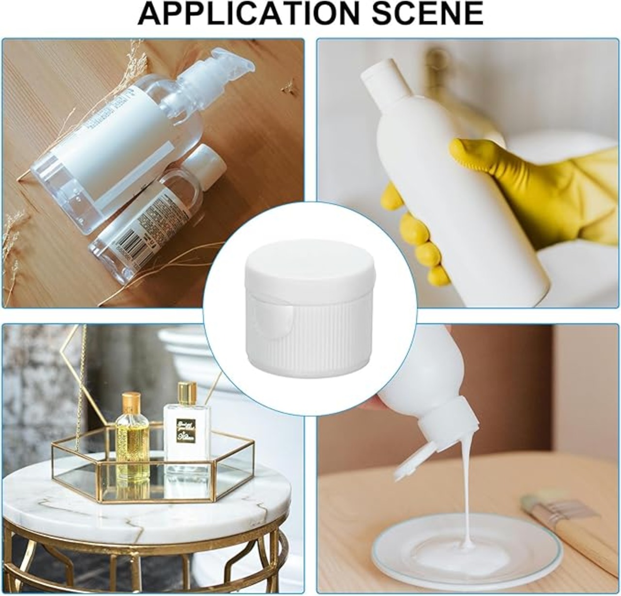 利点: これらのボトルキャップはPPプラスチック素材で作られており、丈夫で壊れにくく、長期間使用できます。これらのプラスチック製ボトルキャップは簡単に洗浄でき、洗浄後に再利用したり、独特なクラフトに使用したりすることもできます。これらのスナップ式キャップはボトルの首に取り付けられるため、しっかりとした防漏シールが得られます。これらの革新的なキャップは、食器用洗剤ディスペンサー、シャンプーやコンディショナーのディスペンサー、ハンドローションディスペンサーとして、ボトルを完全に空にするために機能します。
