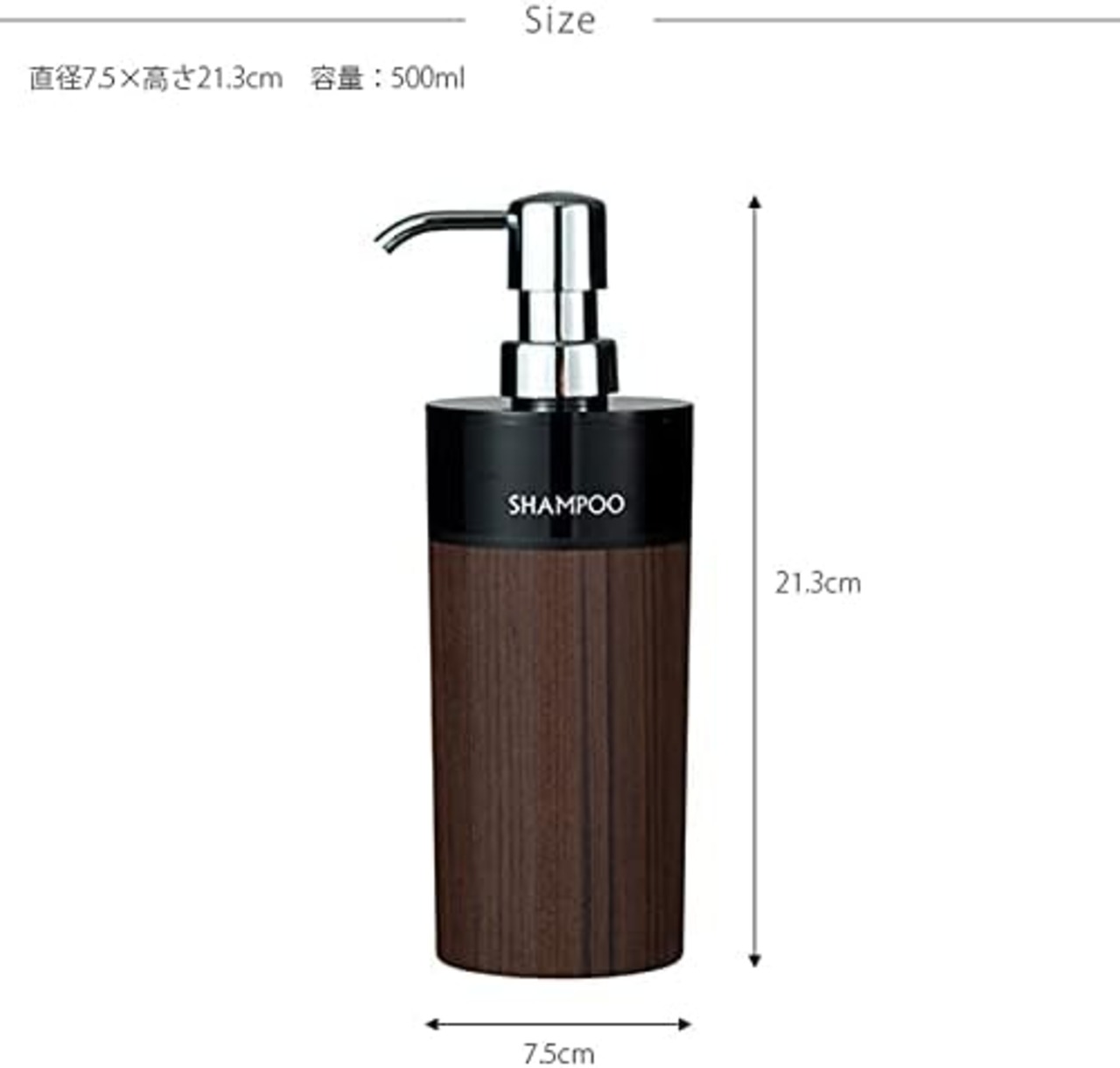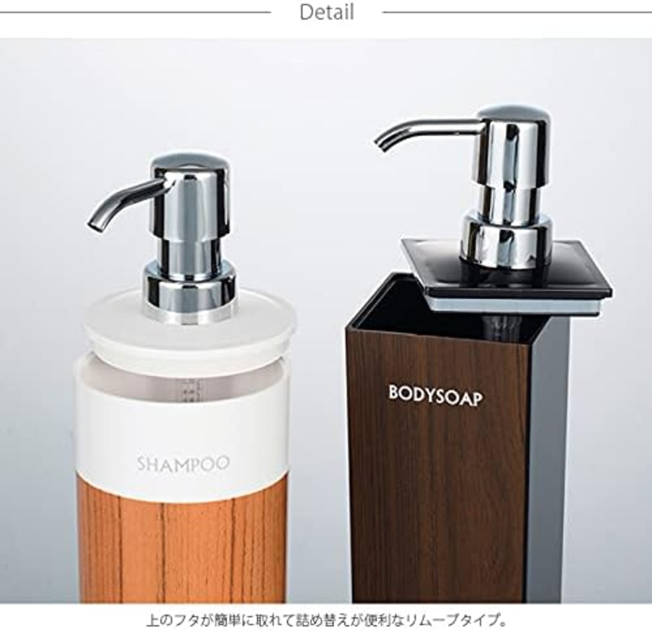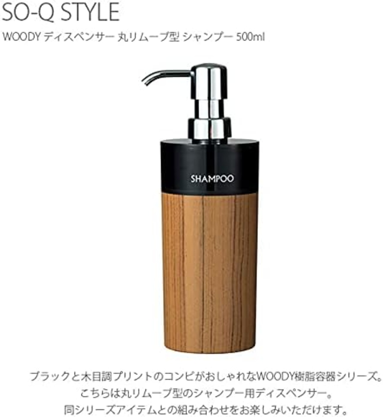 SO-Q STYLE 日本製 ディスペンサー WOODY(ウッデイ) 黒チーク 丸リムーブ型 大 シャンプー 500ml 16-454817