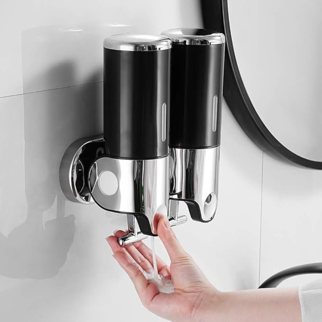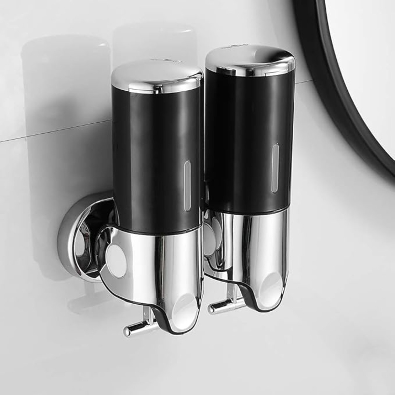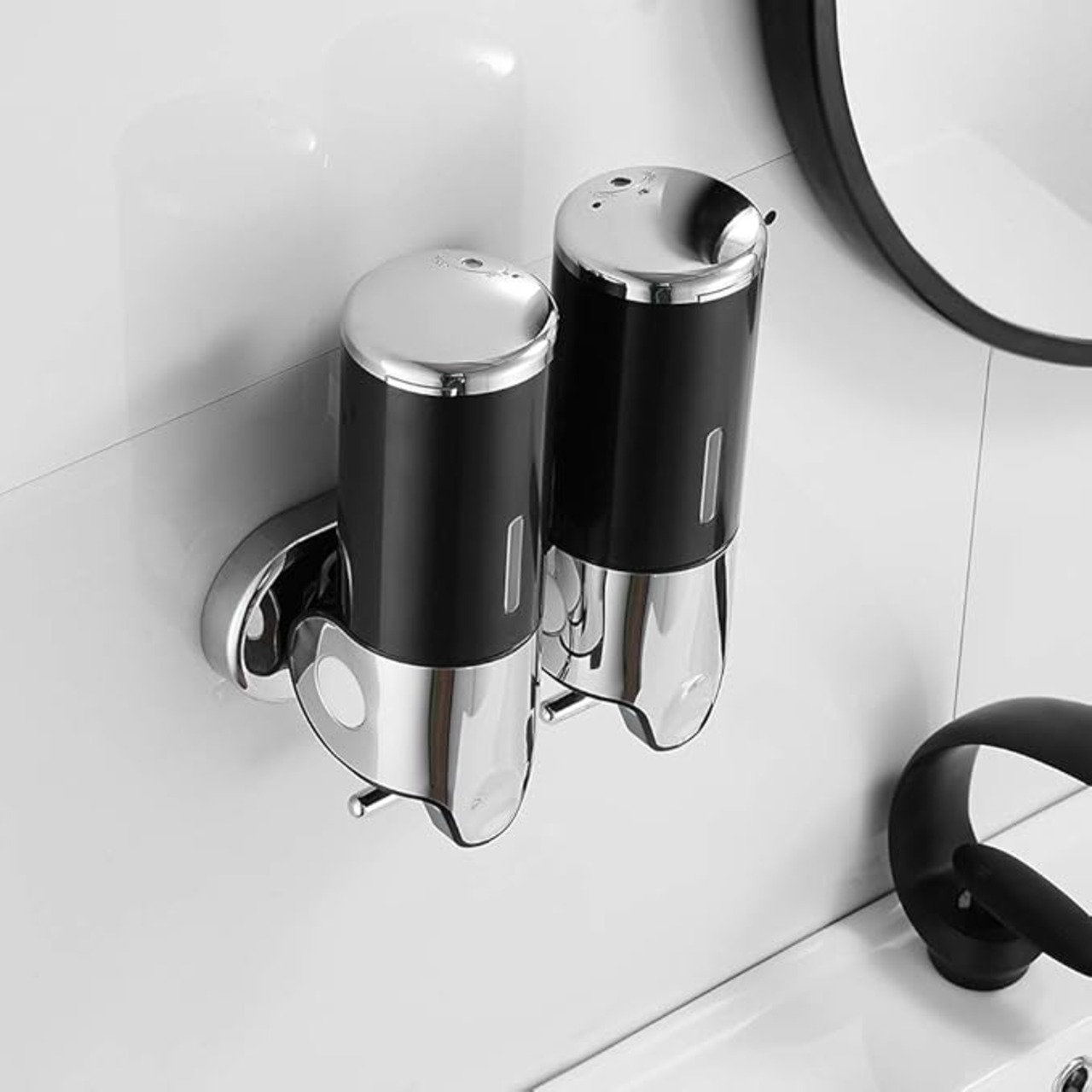 tropical ソープディスペンサー 壁掛け式 シャンプー ボディーソープ 浴室 バスルーム シャワーディスペンサー シルバー 1000ml 2連 (黒)