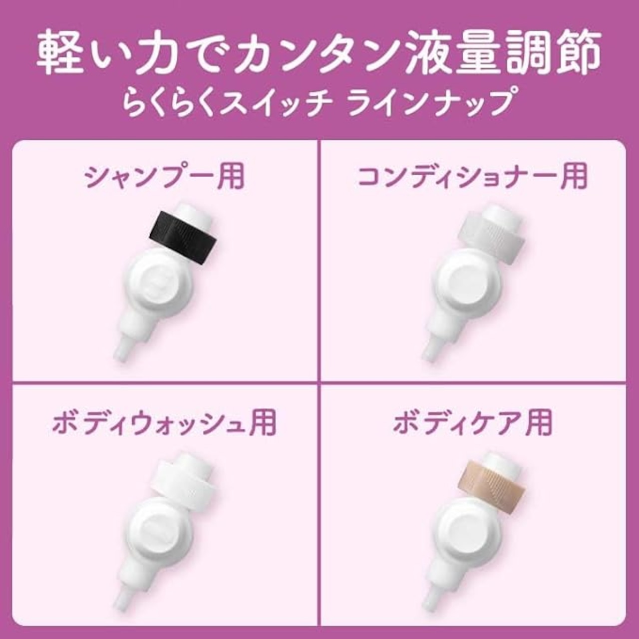 実用的デザイン: ボディソープやボディクリームの切り替えが片手で簡単にできる設計