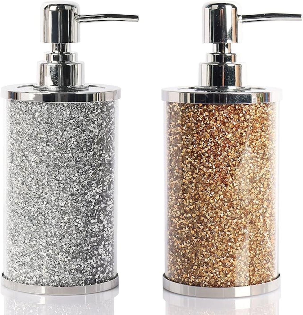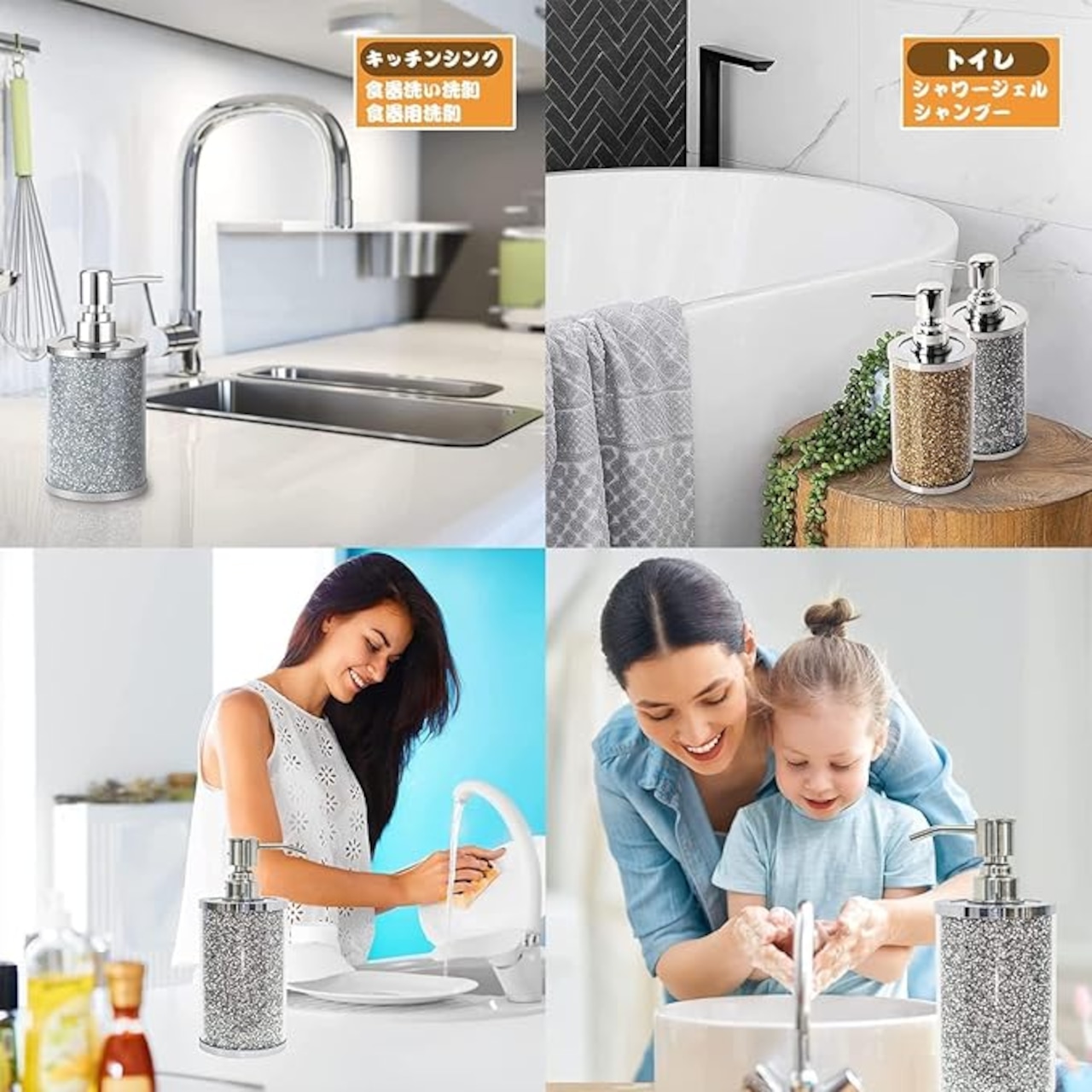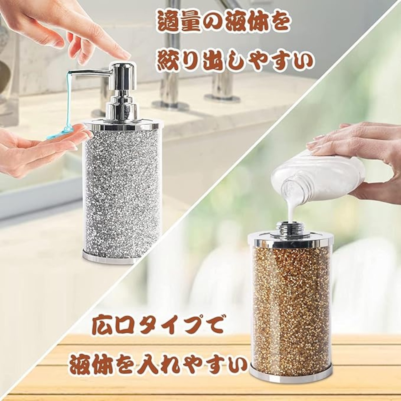 【Home Essentials】ハンドサニタイザーソープディスペンサーは、カウンタートップ、バスルーム、オフィスに設置できます。 ローションソープディスペンサーをデコレーションとして使用することもできます。 光の下でキラキラと輝きます。 バスルームや化粧台用の本当に素晴らしいアクセサリーです。