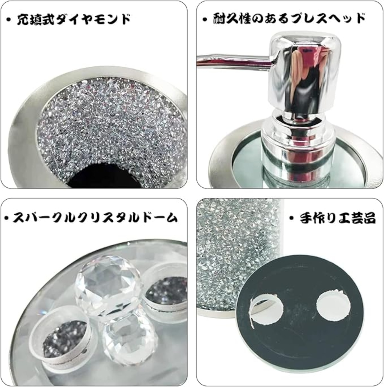 【頑丈で耐久性】 浴室用ソープディスペンサーのポンプヘッドは、厳格な電気メッキ加工を施した高品質のプラスチック製で、外観は滑らかで透明なガラス製で、耐摩耗性と耐久性があります。 かわいいラインストーンが光によく反射し、光の中で輝きます。 高品質の素材と仕上げが、ご自宅のインテリアを引き立てます。