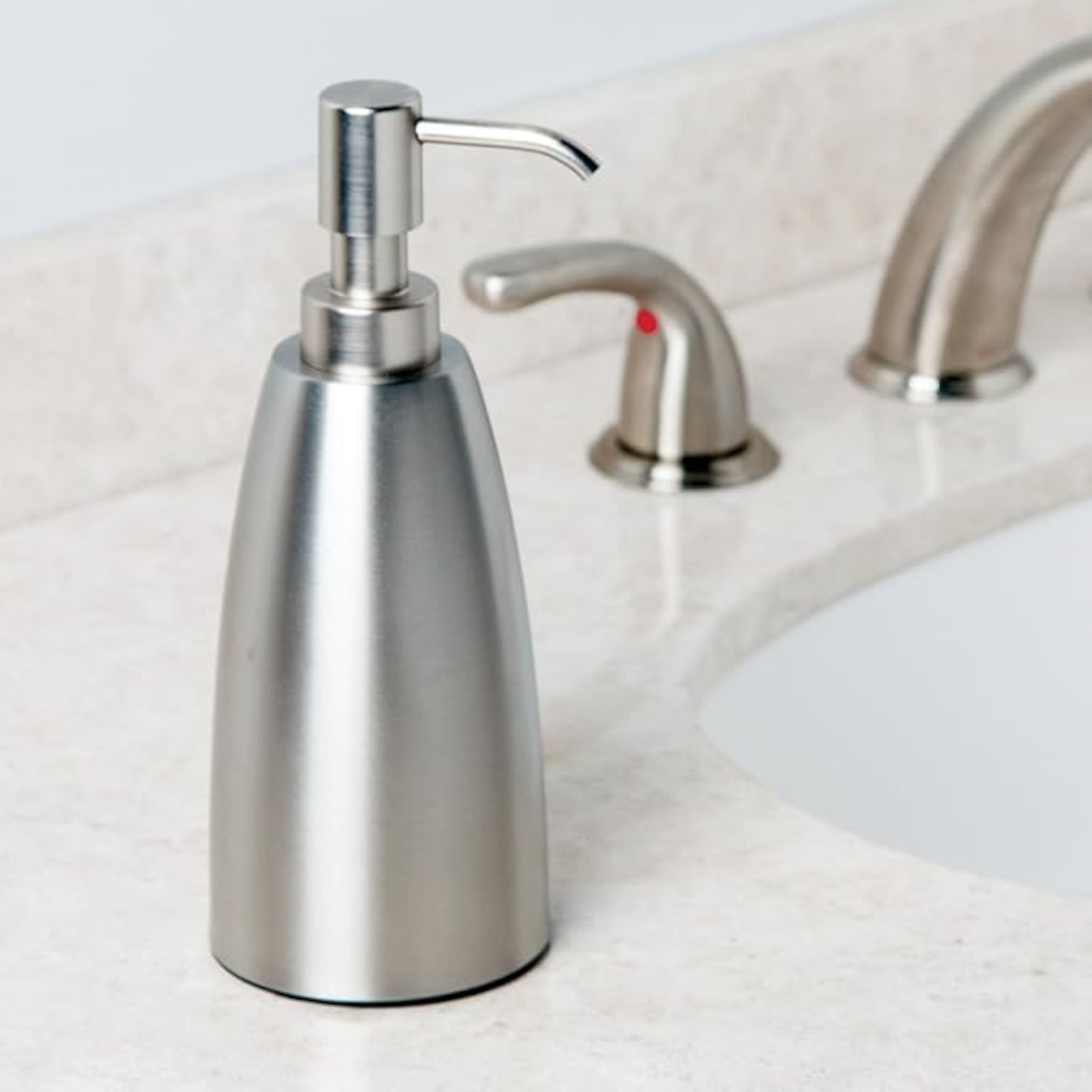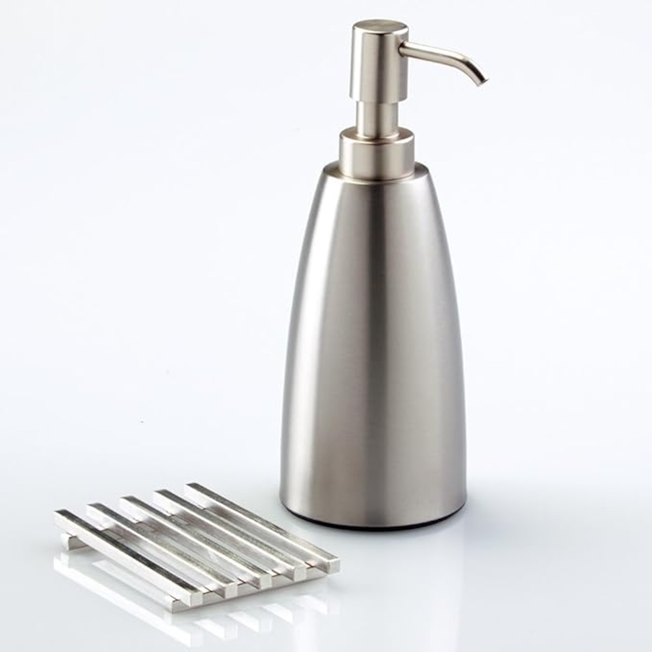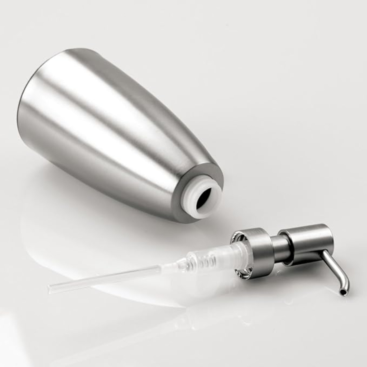 InteDesign Forma ソープボトルはモダンでスタイリッシュなデザイン。キッチンや浴室の水周りで実用的なアイテムです。ボトルはステンレス、ポンプはプラスチックでできている防錆製のソープボトルです。