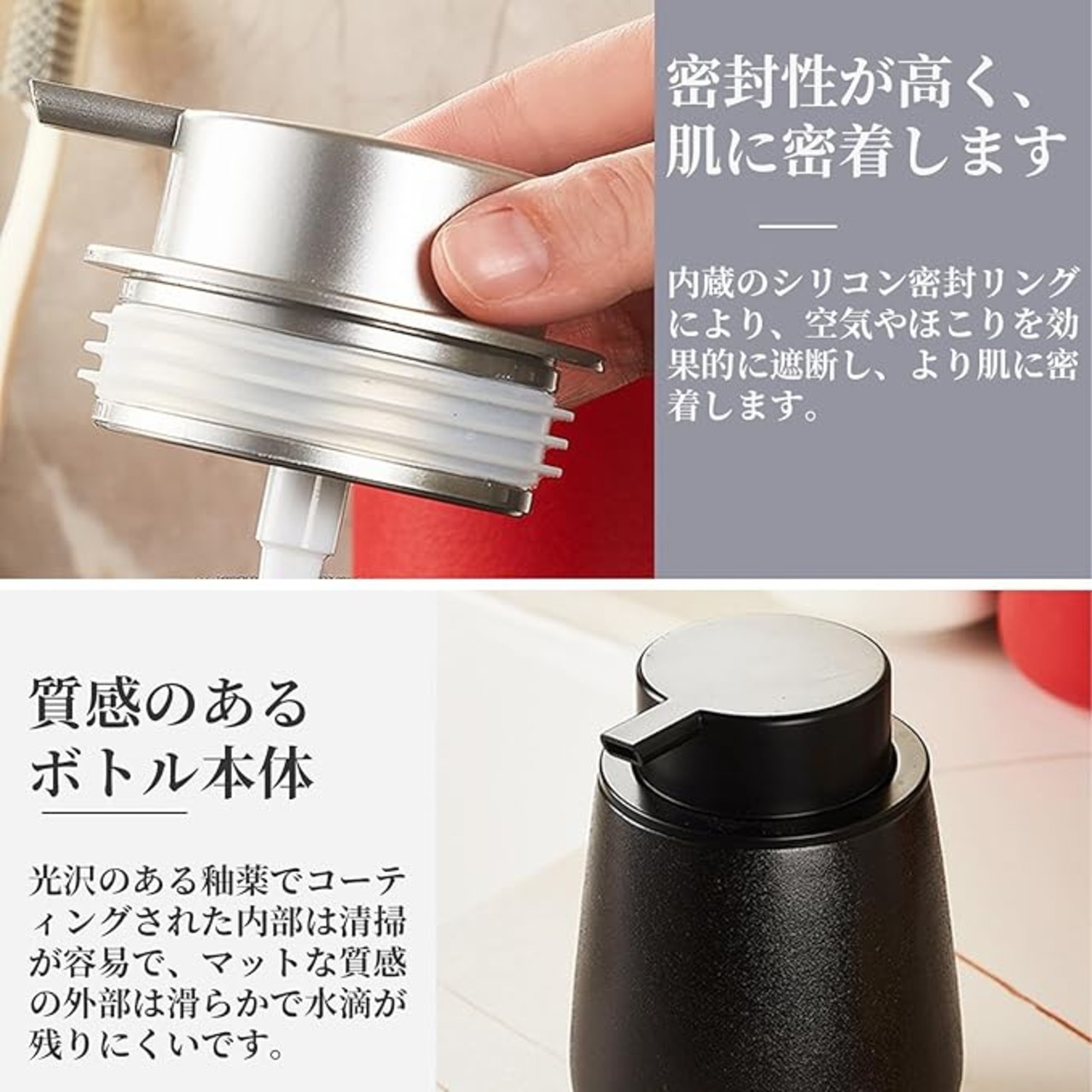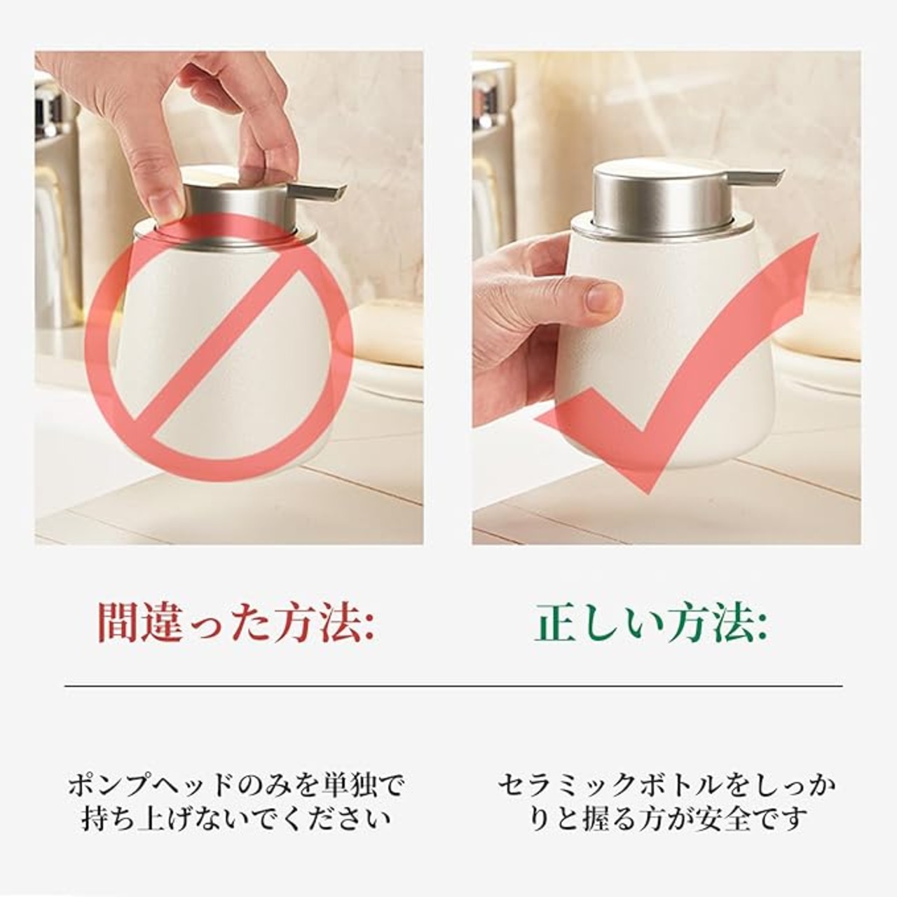 ソープディスペンサー 泡 セラミック 400ml 手洗い石けん ディスペンサー ソープボトル 容器 おしゃれ 手動 押しタイプ 台所 キッチン トイレ 洗面所 お風呂場などに適用
