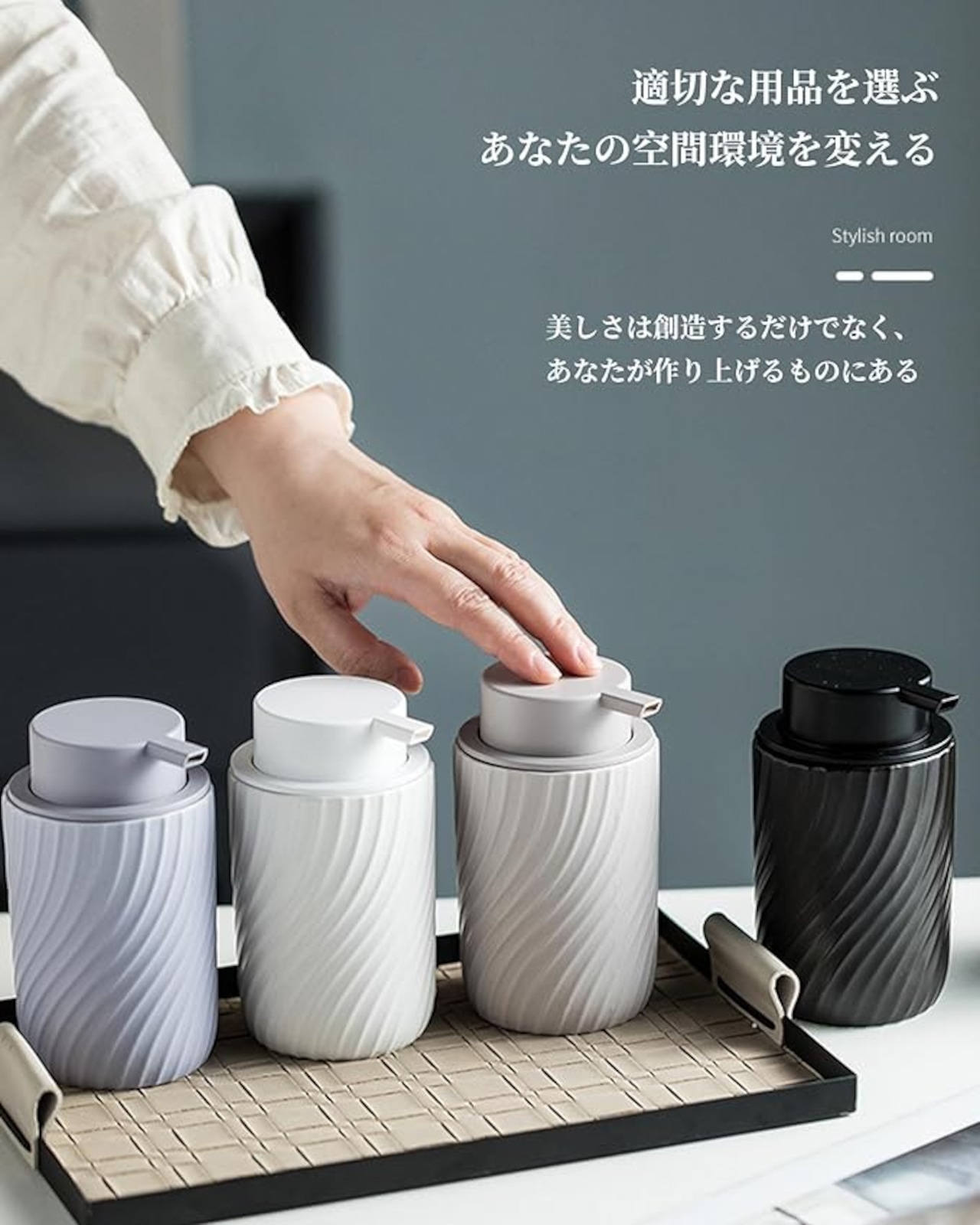 ソープディスペンサー 泡 セラミック 手洗い石けん ディスペンサー ソープボトル 容器 手動 おしゃれ 押しタイプ キッチン 台所 洗面所 トイレ お風呂場などに適用 280ml