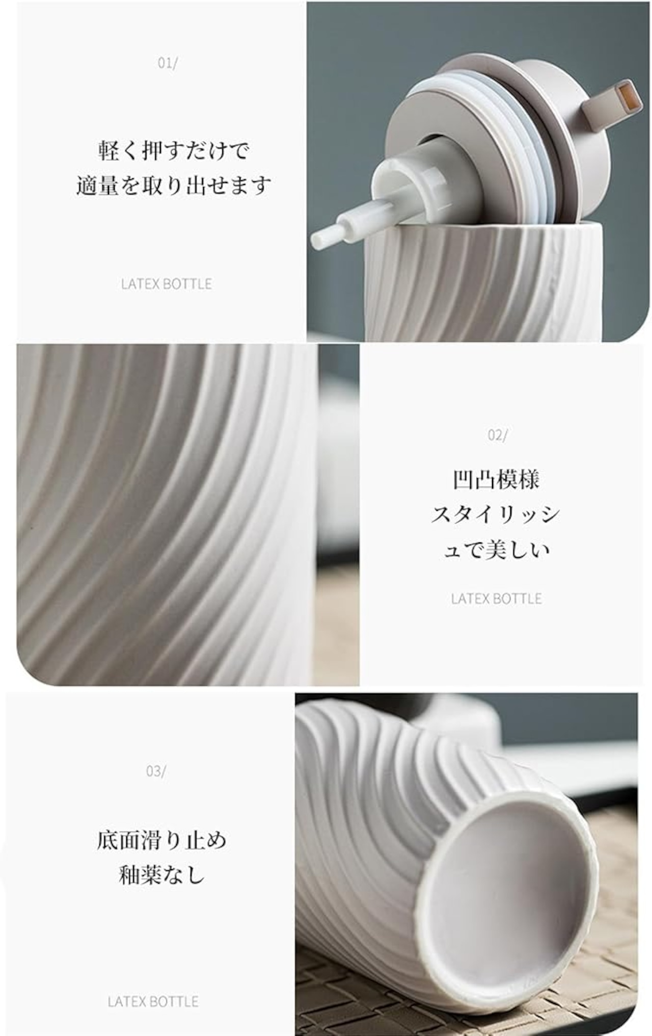 サイズ:約8*13.5cm 容量:約280ml 重量:約0.35kg 材質:ボトル:陶器 ポンプ:プラスチック。
