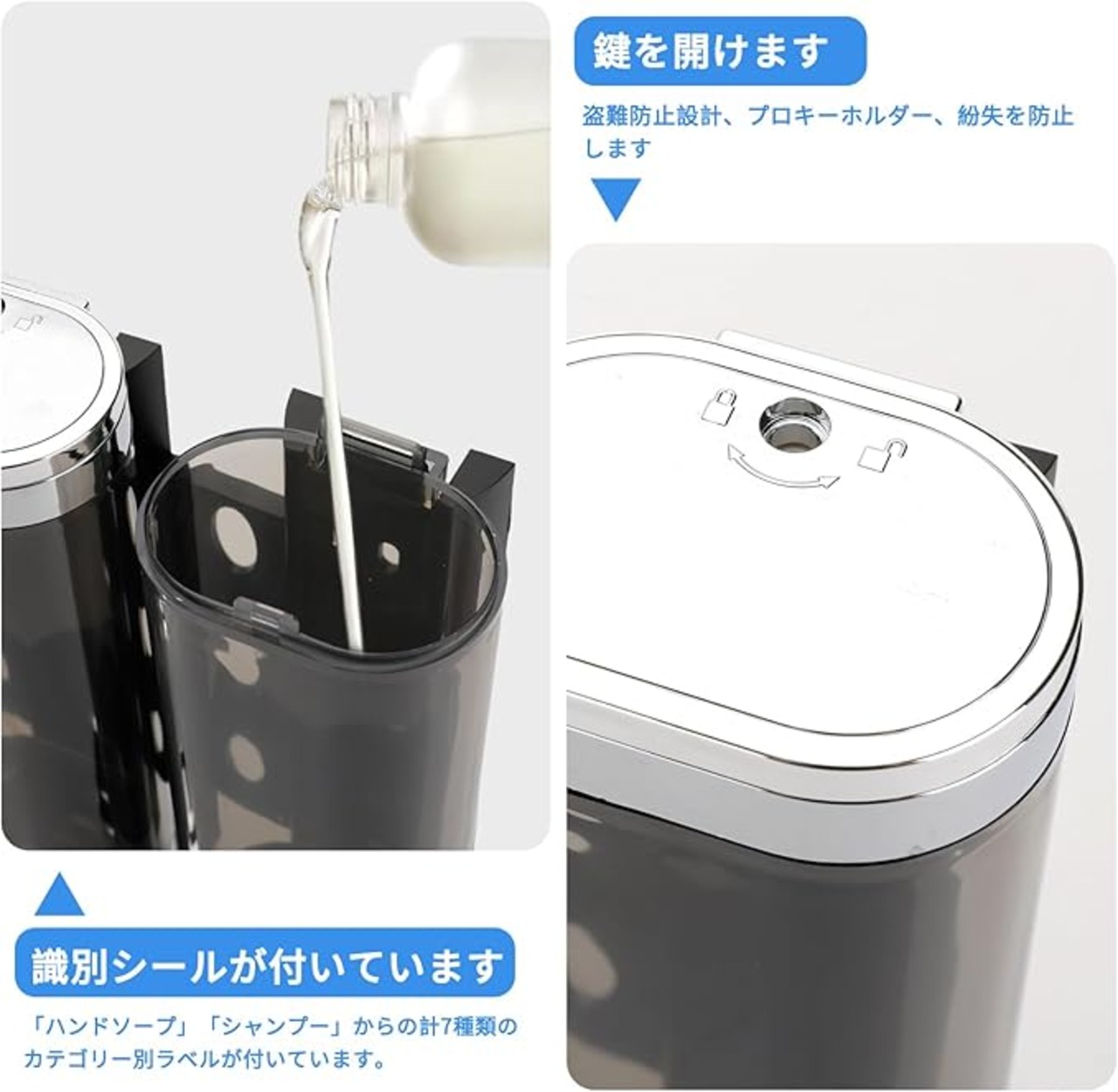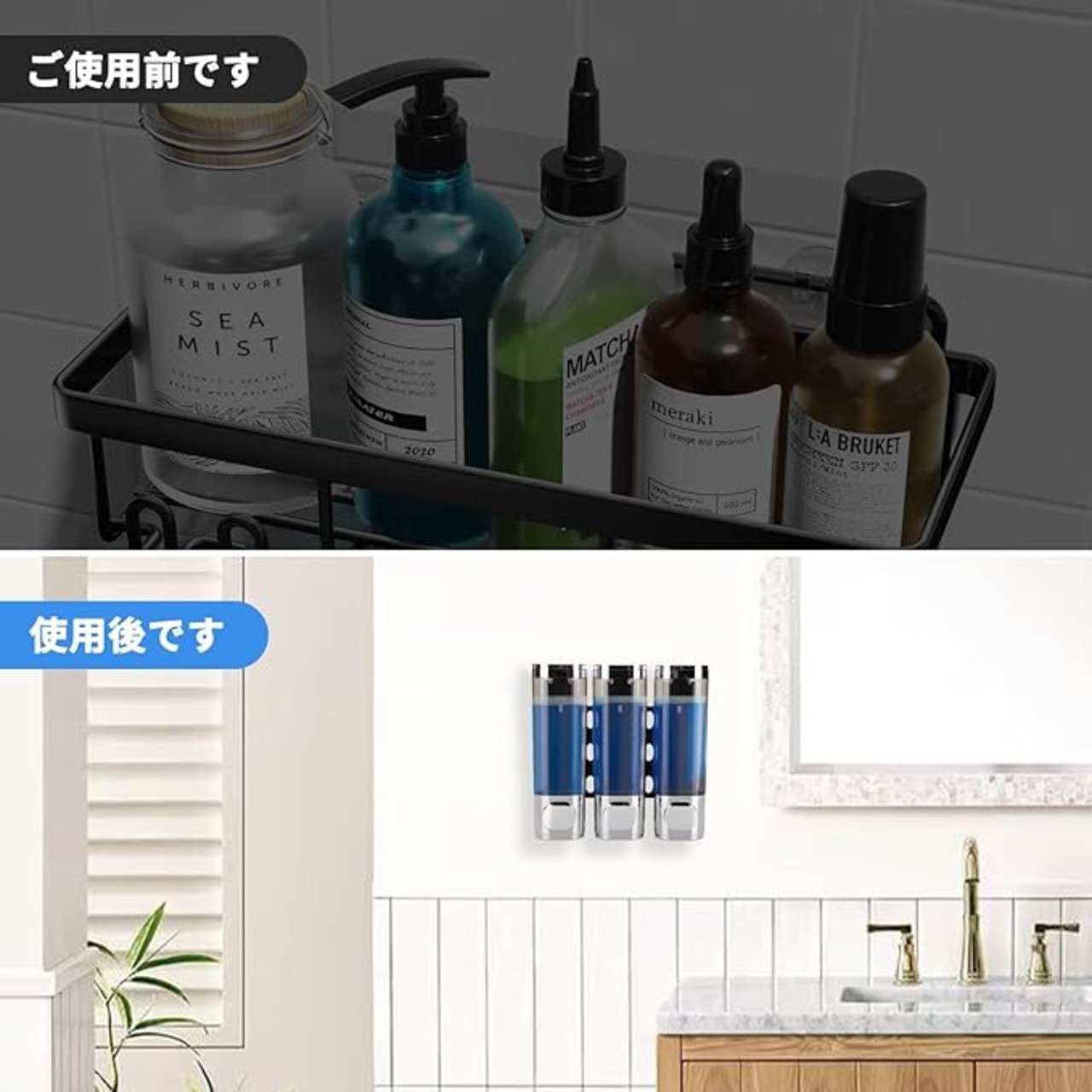整理整頓: シャンプー、コンディショナー、ボディーウォッシュ用のラベル付きで、浴室をスッキリと整理できます