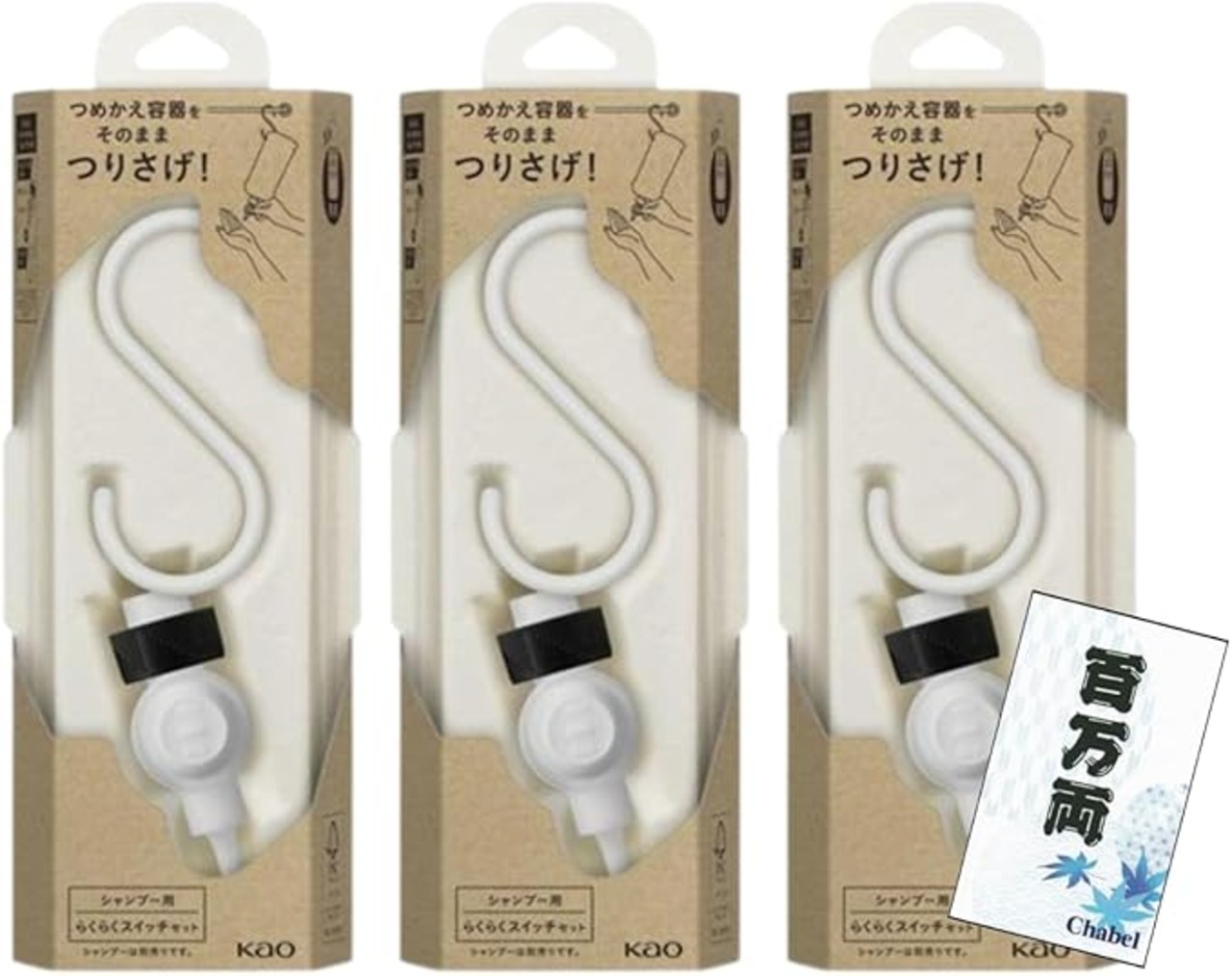 シャンプー用 らくらくスイッチ 3個セット フック付きつめかえホルダー S型 取り付け簡単 浴室用+百万両くじ
