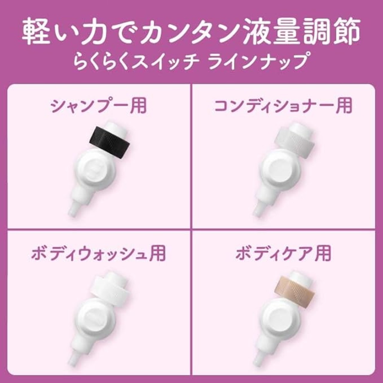 実用的デザイン: シャンプーの切り替えが片手で簡単にできる設計