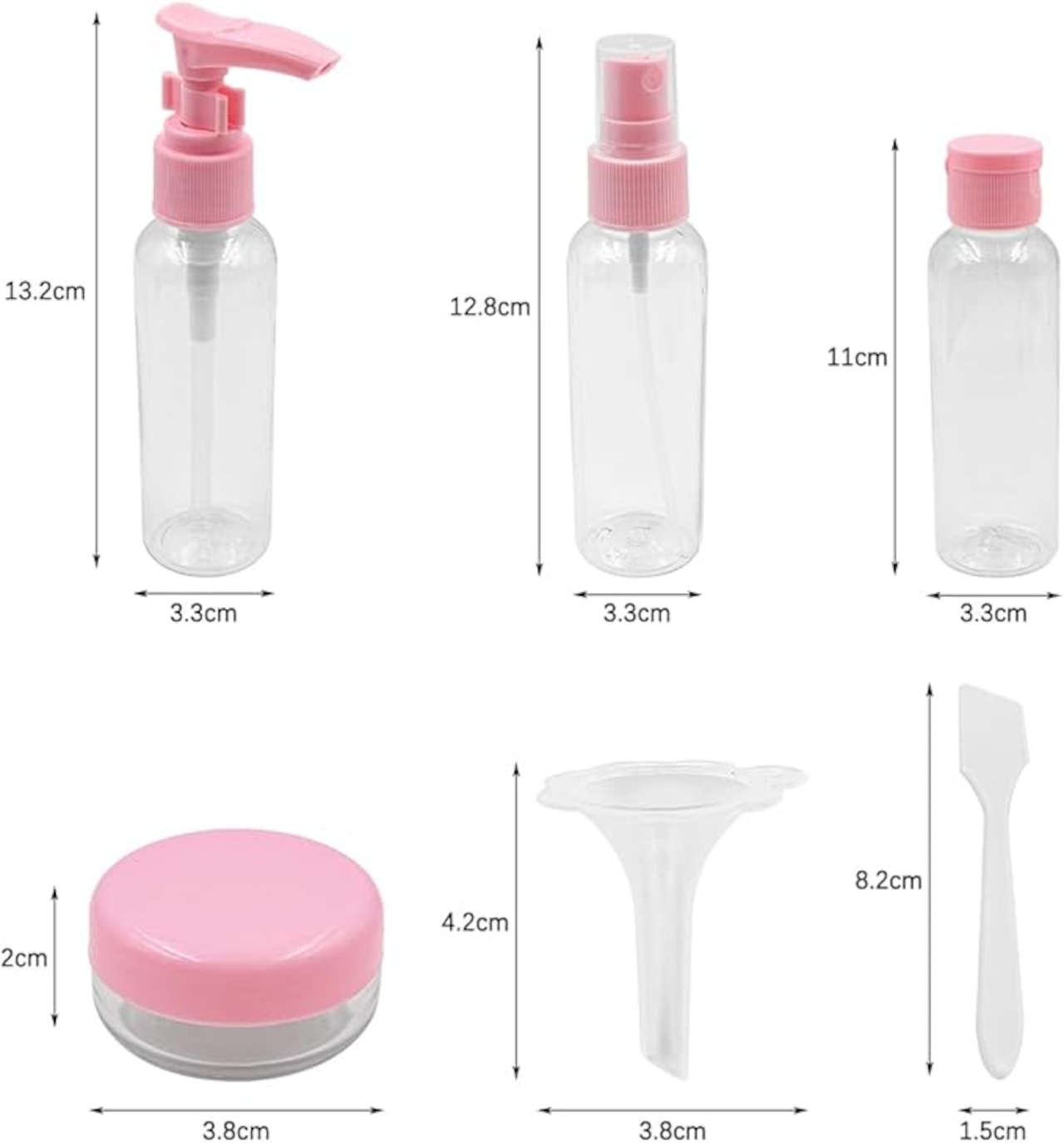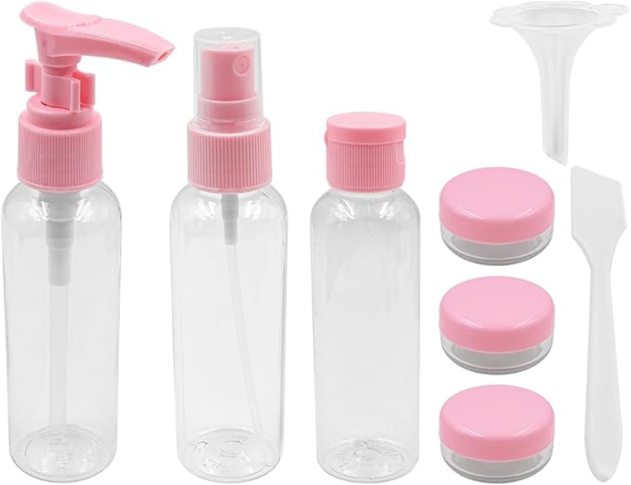 高品質プラスチックで作られたNUZAMASトラベル詰め替えボトルセットのご紹介です。 このセットには、小じょうご(4cm)、小スクープ(7.5cm)、30MLローションボトル(14.5cm)、30MLスプレーボトル(13cm)、10gクリームジャー(2cm)が含まれます。 セット総重量は138gです。 これらの詰め替えボトルは耐久性と再利用性を考慮して設計されており、漏れ防止スナップリング設計が特徴です。 コンパクトなサイズなので、バックパック、化粧ポーチ、財布に入れて持ち運ぶのに便利です。 このセットは、フェイシャル製品、ローション、手の消毒剤など、さまざまな液体やクリームの保管に最適です。 持ち運びやすいボックスにすっきりまとめたポータブルボトルなので、旅行や出張、アウトドアなどにも最適です。 愛する人への素晴らしい贈り物にもなります。