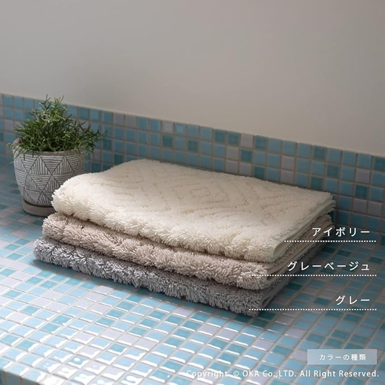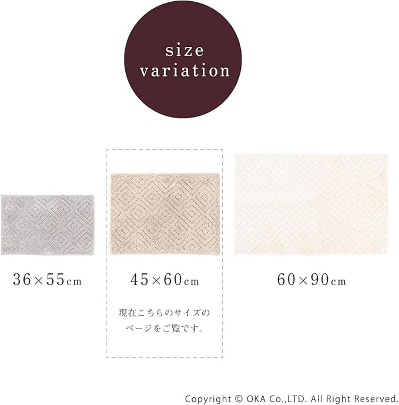 オカ(OKA) 乾度良好ピュール バスマット 約45cm 60cm グレーベージュ (お風呂マット 大判 浴室 おしゃれ 洗面所 足ふきマット 抗菌 防臭 吸水 速乾 洗える)