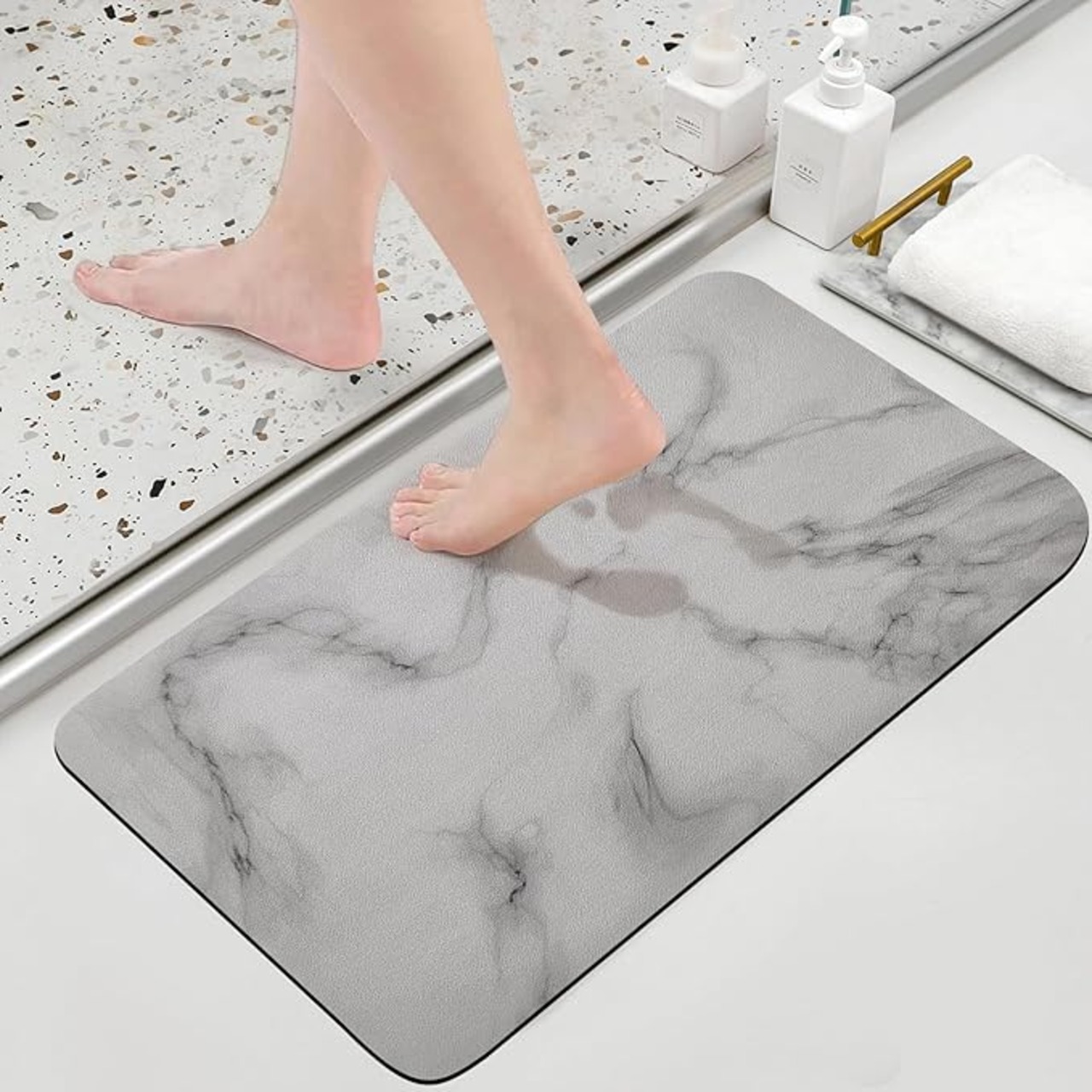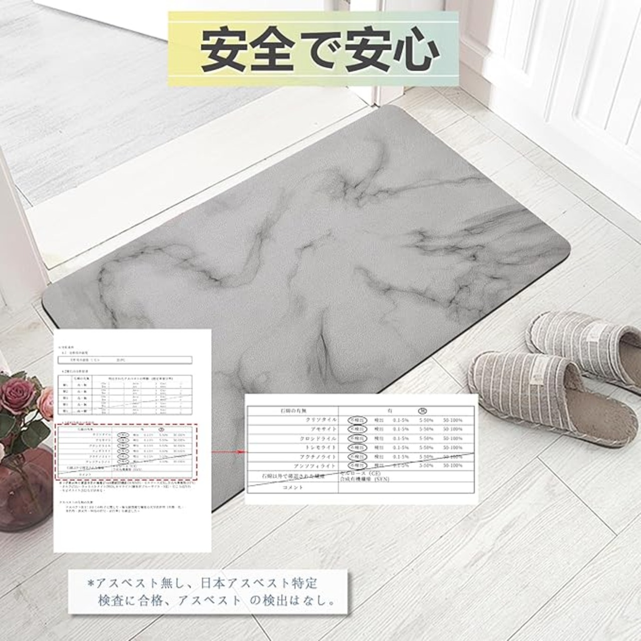 slefancy 珪藻土 バスマット 足拭きマット お風呂マット 速乾 洗える ソフト 吸水マット 滑り止め 浴室マット 珪藻土マット 脱衣所 洗面所 玄関マット キッチン 手入れ簡単 収納便利 (60*40*0.5cm, グレー大理石)
