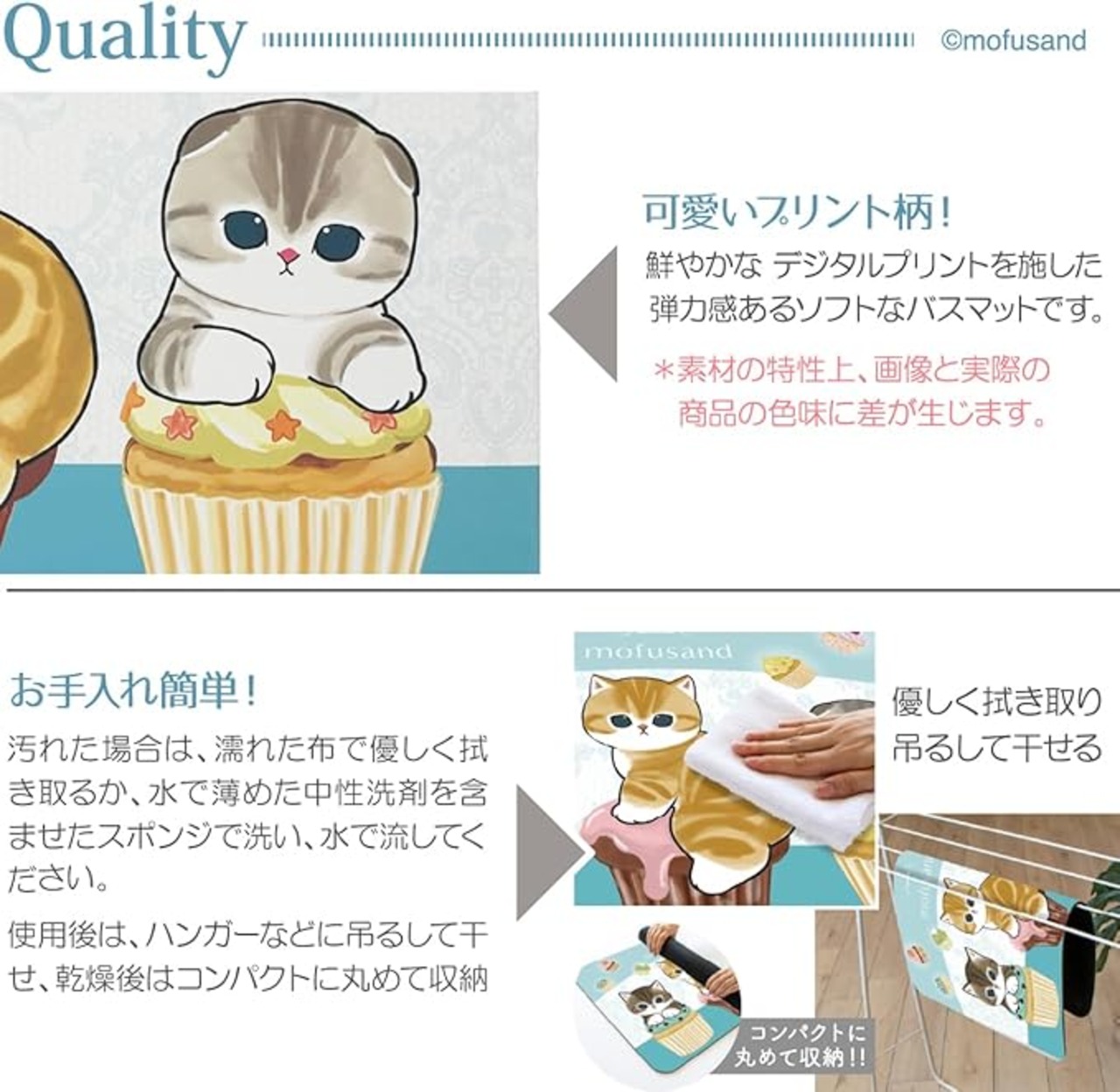 ヨコズナクリエーション モフサンド バスマット (珪藻土パウダー入 ソフトバスマット カップケーキにゃん, M)