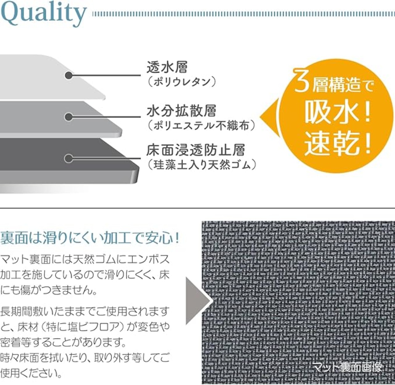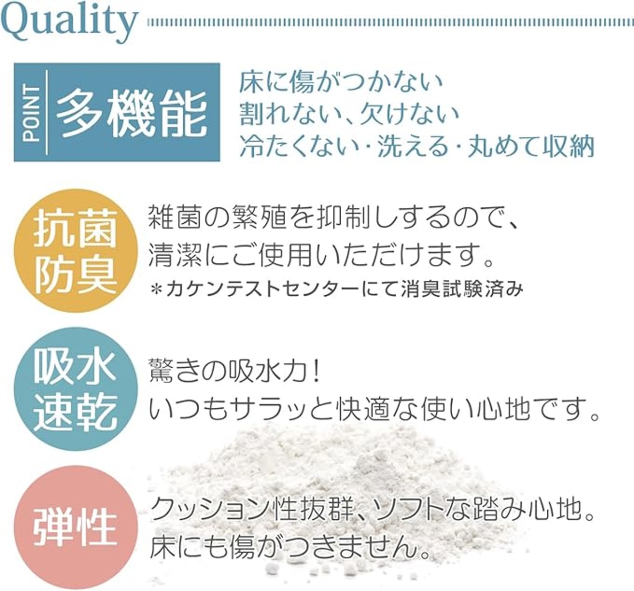 抗菌防臭】高い抗菌防臭で、マットを清潔に保ちます。 ※素材特有のにおいがあります。気になる場合は、風通しのよい場所で1~2日、陰干ししてください。