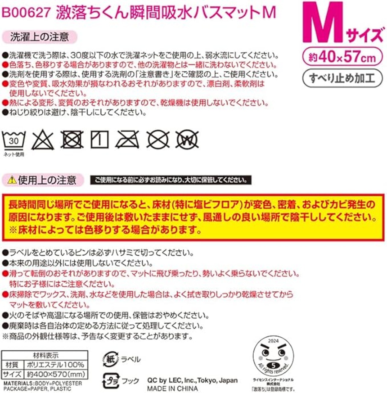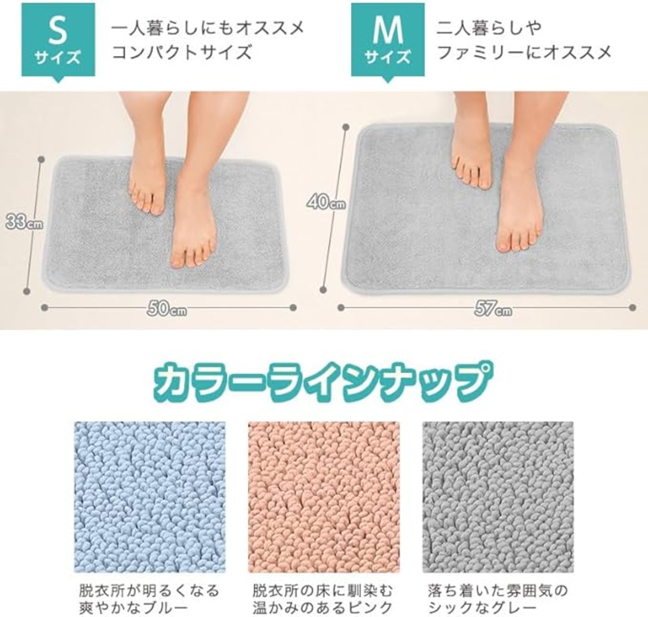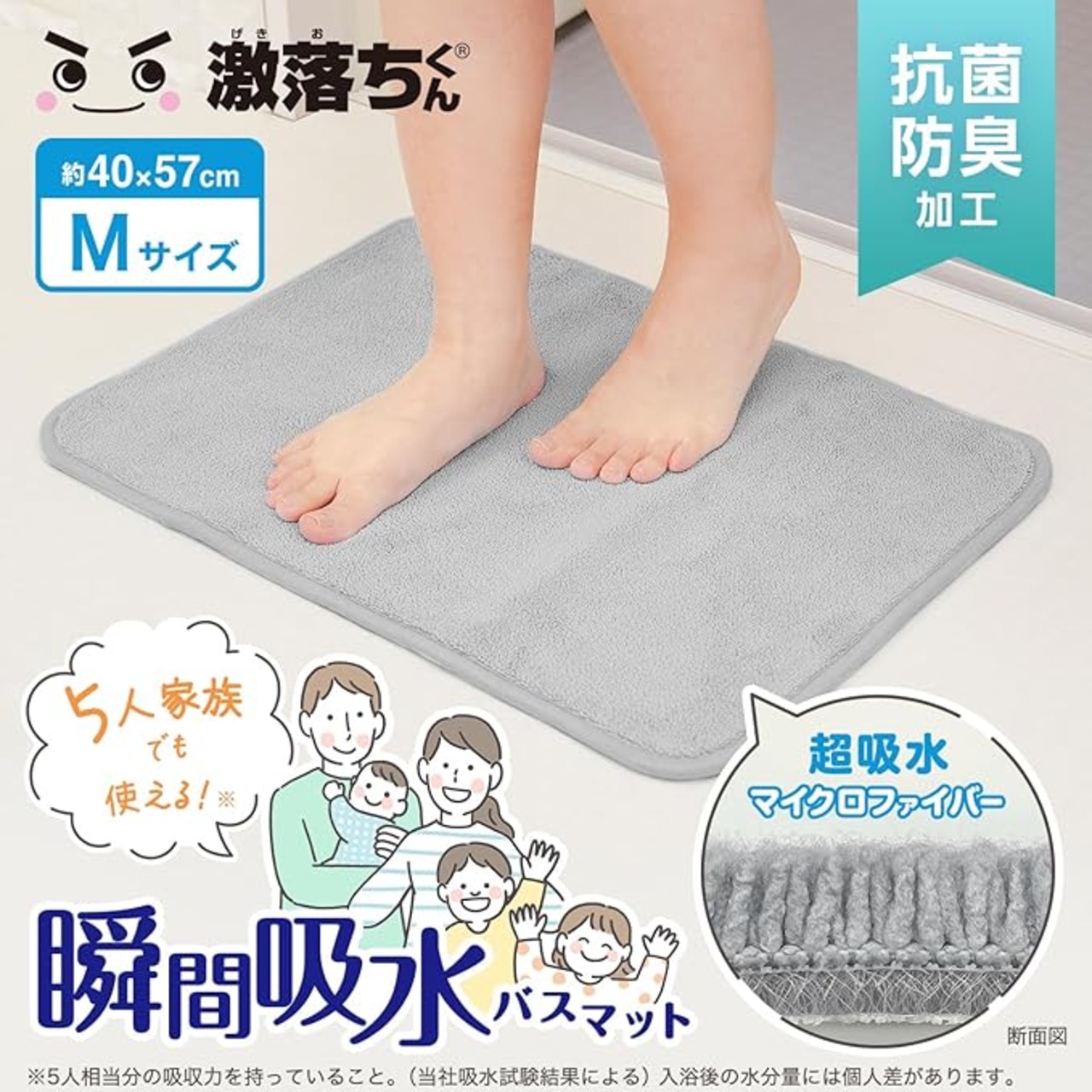 激落ちくん 瞬間吸水 バスマット (M ・約57 40cm) グレー/抗菌 防臭 加工/すべり止め / 5人家族でも使える