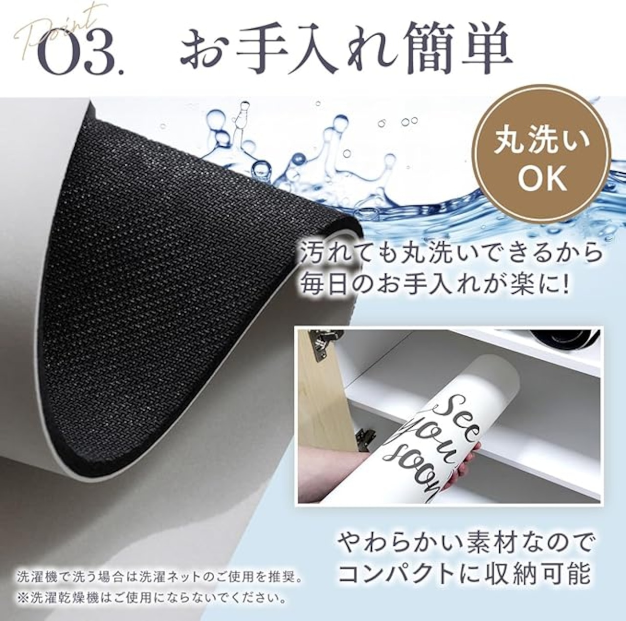 汚れても丸洗いできるから、毎日のお手入れが楽に!やわらかい素材なので、コンパクトに収納可能。