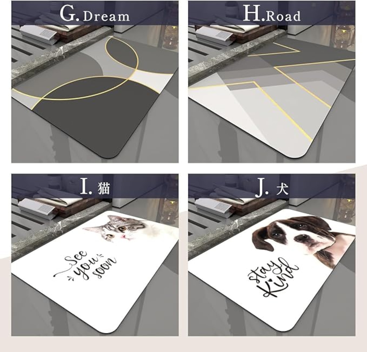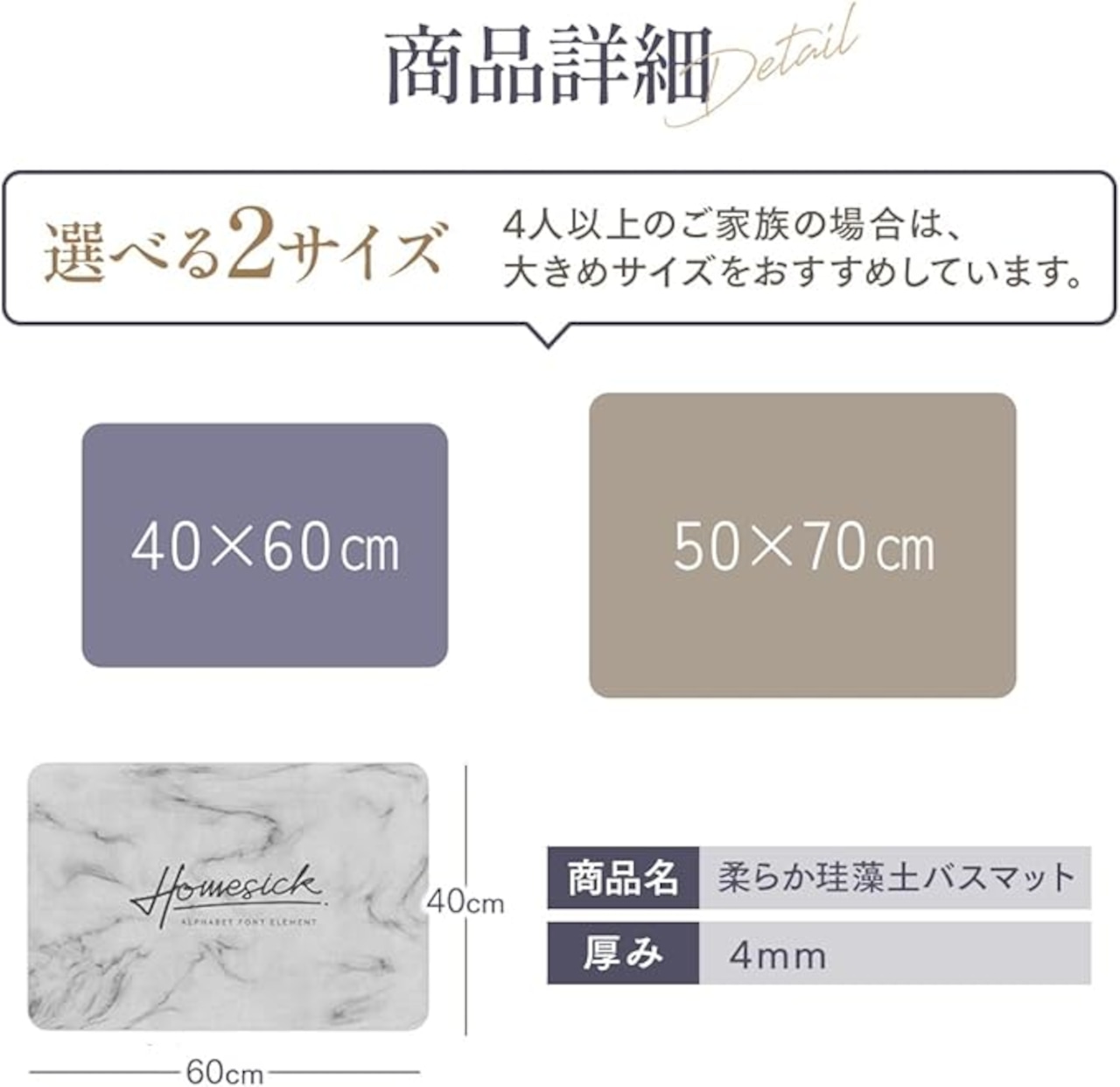 珪藻土 バスマット ソフト 大きめ 小さめ 洗える マット お風呂マット 速乾 足拭きマット 柔らか バスルーム 割れない 大判 珪藻土マット 吸水 厚手 浴室 洗面所 脱衣所 40cm 60cm (B.moderngray)