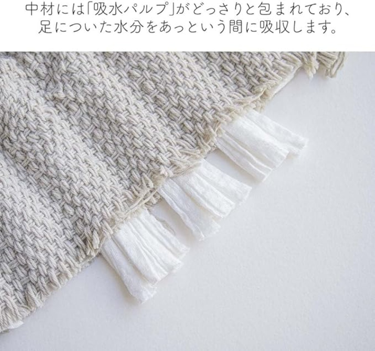 やわらかな表地に中材の吸水パルプがどっさり包まれているので、吸水力が抜群です。
