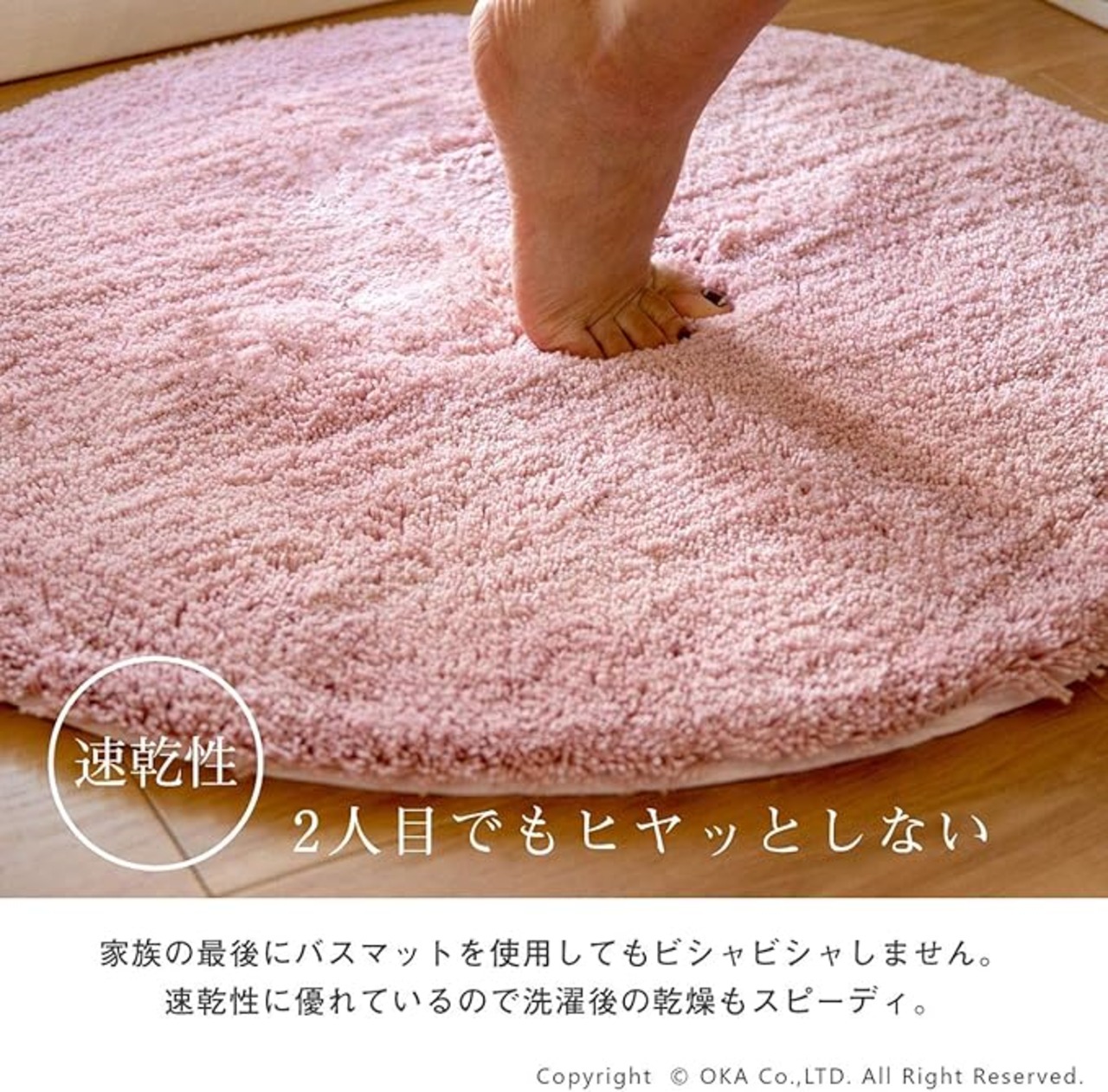 バスマットでは珍しい丸型でバスルームだけでなくリビングや寝室など様々な場所でお使い頂けます。