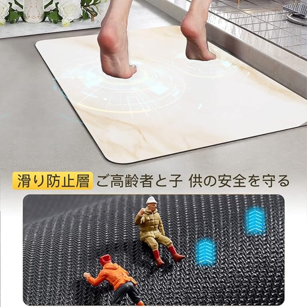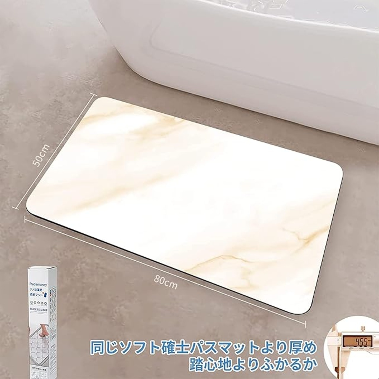 珪藻土 バスマット 足拭きマット 速乾 吸水 滑り止め ソフト 日本国内検査報告書 ノンアスベスト 80x50cm 珪藻土マット 洗濯可能 収納便利 大理石風 浴室 洗面所 風呂マット 抗菌 防臭 (ゴールド)