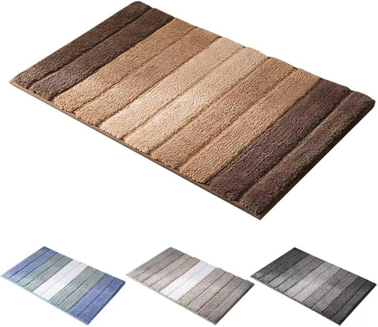 Makuru バスマット 洗える 速乾 おしゃれ 大判 人気 お風呂マット あしふきマット 足拭 滑り止め 吸水 マイクロファイバー キッチン 玄関 ドア 洗面所 浴室用 (プラウン, 60x40cm)