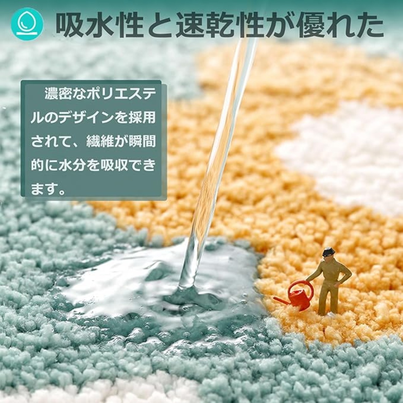 「吸水性と速乾性が優れた風呂マット」バスマットの表面は可愛い小花ような濃密なポリエステルのデザインを採用されて、繊維が瞬間的に水分を吸収でき、お浴の後で、足に残された水滴を吸収し、通気性も抜群で、水分が速く蒸発できます。