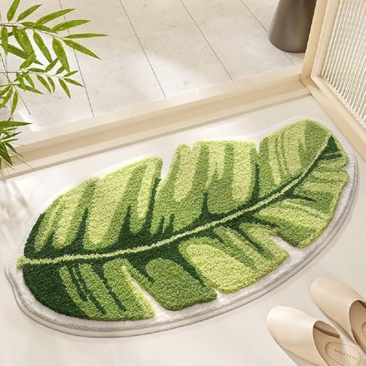 koundeneko お風呂マット 葉の形 ラグマット おしゃれ フワフワ 玄関マット 泥落とし 吸水 洗える カーペット お風呂 洗面所 トイレ 浴室 ベッドサイド 夏 ハワイアン パーティー飾り