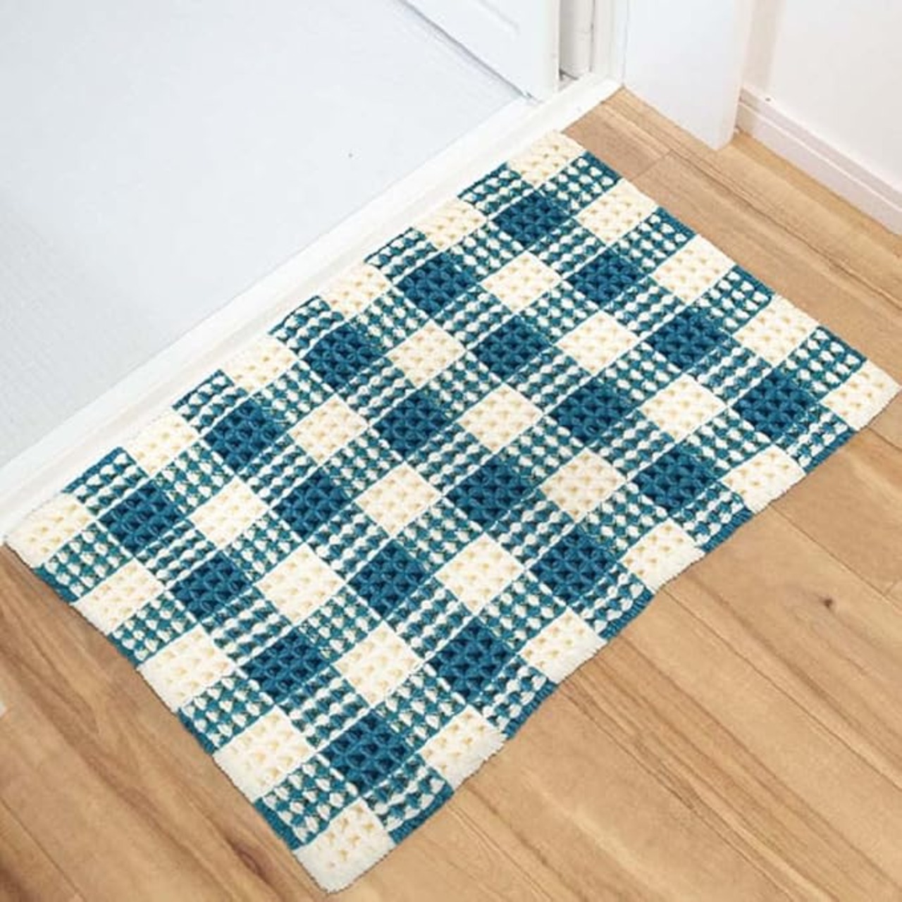 オカトー(Okato) Ag+抗菌ワッフルバスマット(チェックブルー)