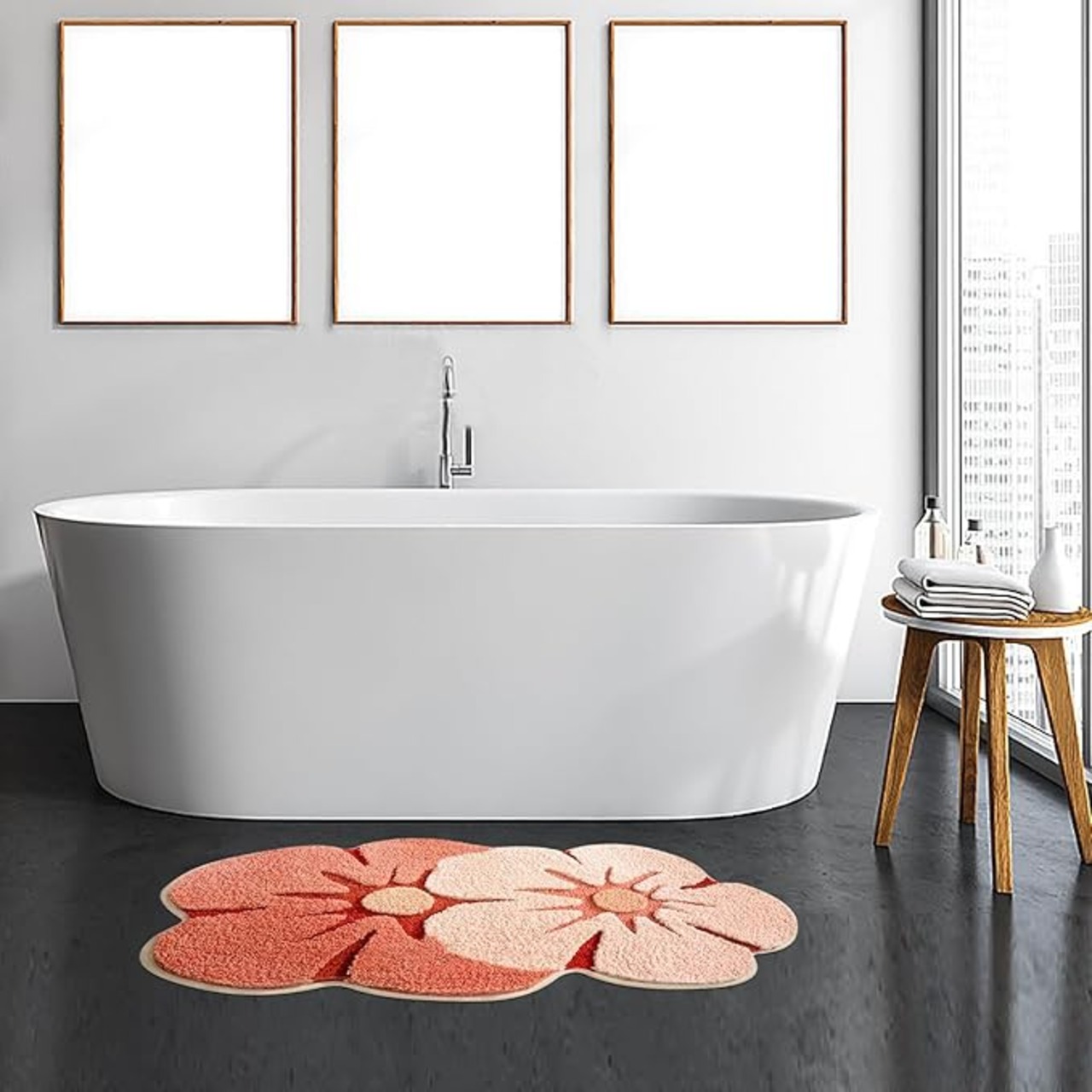 バスマット 強吸水 速乾 洗える 足拭きマット 防滑 滑り止め 厚手 ふわふわ 洗濯可能 浴室/洗面所/トイレ/お風呂用 植毛フロア ポリエステル 極細繊 柔らか ソフト 小清新デザイン 45 70cm 雲形 かわいい おしゃれ (花)