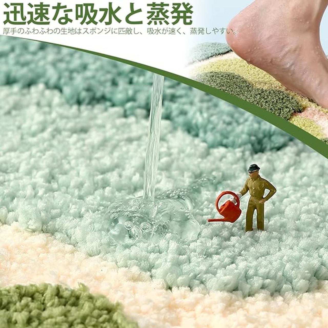 この雲形バスマットは、浴室や洗面所、トイレ周りにぴったりの小清新デザインで、視覚的にも癒し効果のある一枚です。素材は高品質なポリエステル(超極細繊維)を使用しており、ふんわりとした厚みと優れた吸水性、速乾性を兼ね備えています。サイズは45 70cmで、バスタブのそばやシンクの前にちょうど良い大きさ。植毛技術により密度を従来の2倍にし、厚みも50%アップ。高い防滑性能(0.45以上)と防カビ・防臭・抗菌機能付きで、日常使いにも安心。手洗い可能でお手入れ簡単、長く清潔にお使いいただけます。家族全員にやさしい、母子にも使える安心素材です。ホルムアルデヒド含有量:≦300 mg/kgPHは4.0 ~ 9.0異臭:無臭堅牢度:≧3滑り止め性能:≧0.4【商品仕様】サイズ:45 70cm素材:ポリアエステル(超極細ファイバー)形状:雲型(異形)工法:植毛+机織り機能:吸水、速乾、滑り止め、抗菌、防カビ、柔らはまだ手に触れます使用場所:お風呂、洗面所、トイレ、バスタブなどがあります。洗濯方法:手洗いもおすすめです(30度以下)ご注意:1.適用する場合:バスルームの入り口、手洗い台の下、バスタブの横、シャワールームの入り口などです。2.日常の掃除はたたいてふるうことを主にして、水洗いは30度の水温を使用して洗うことをお勧めして、強い日差しによくありません3.背中が大量に水に当たると滑り止めが弱くなる可能性がありますので、使用時は底に水が溜まってはいけません。