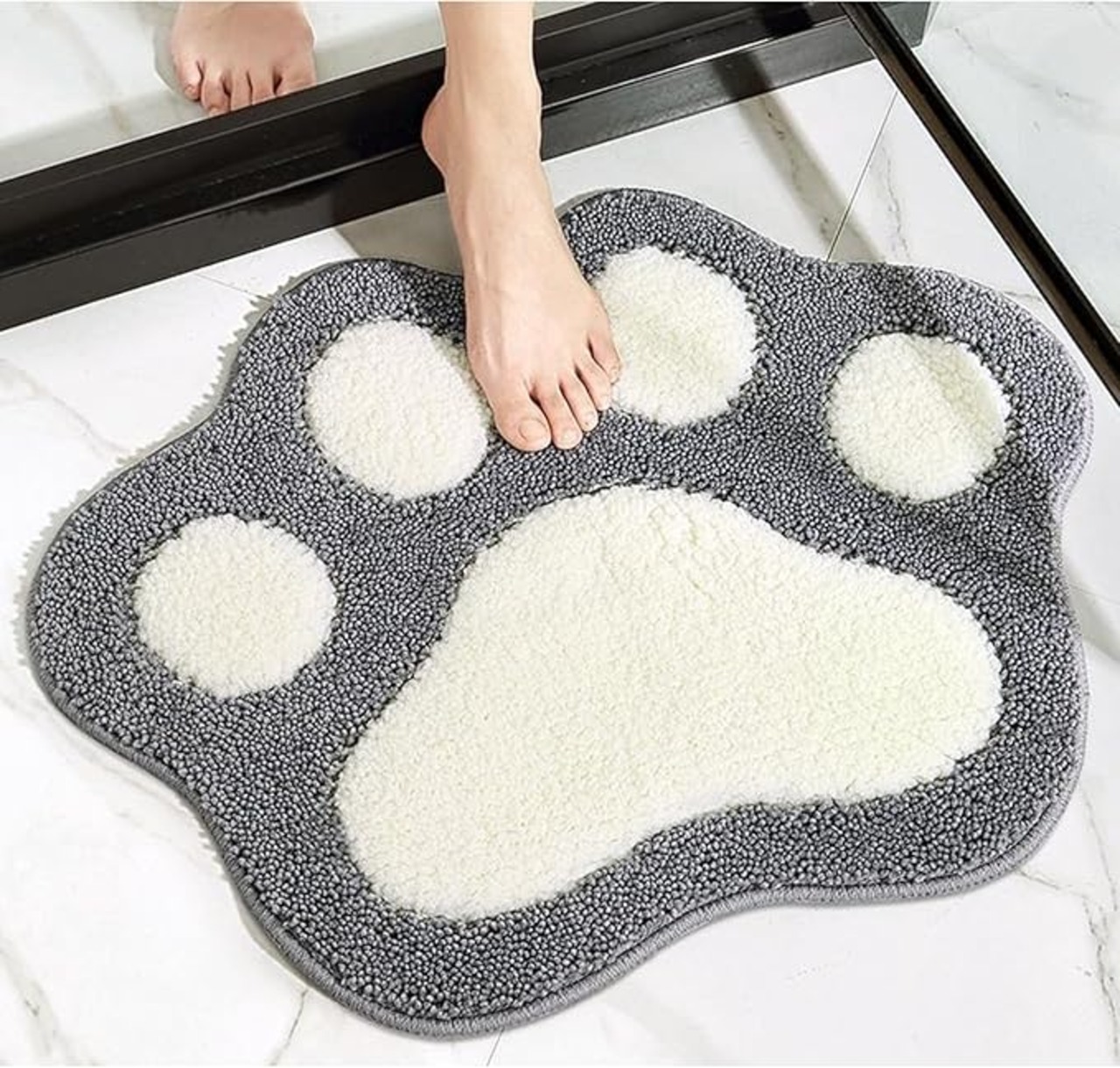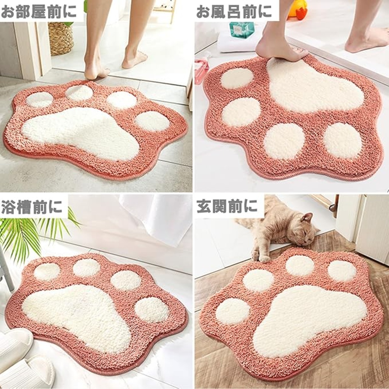 ISEFUJI 玄関マット バス 足ふき お風呂 肉球 猫足 ネコ 猫 吸水速乾 洗える マイクロファイバー 厚手 かわいい (ブラウン, 凹)