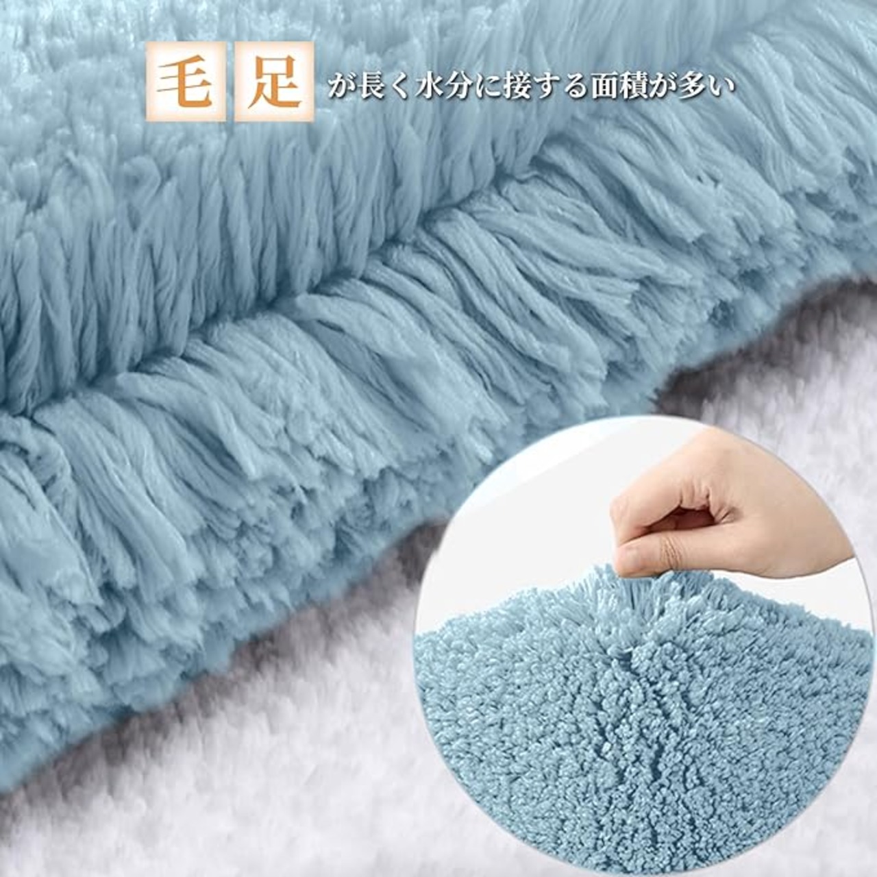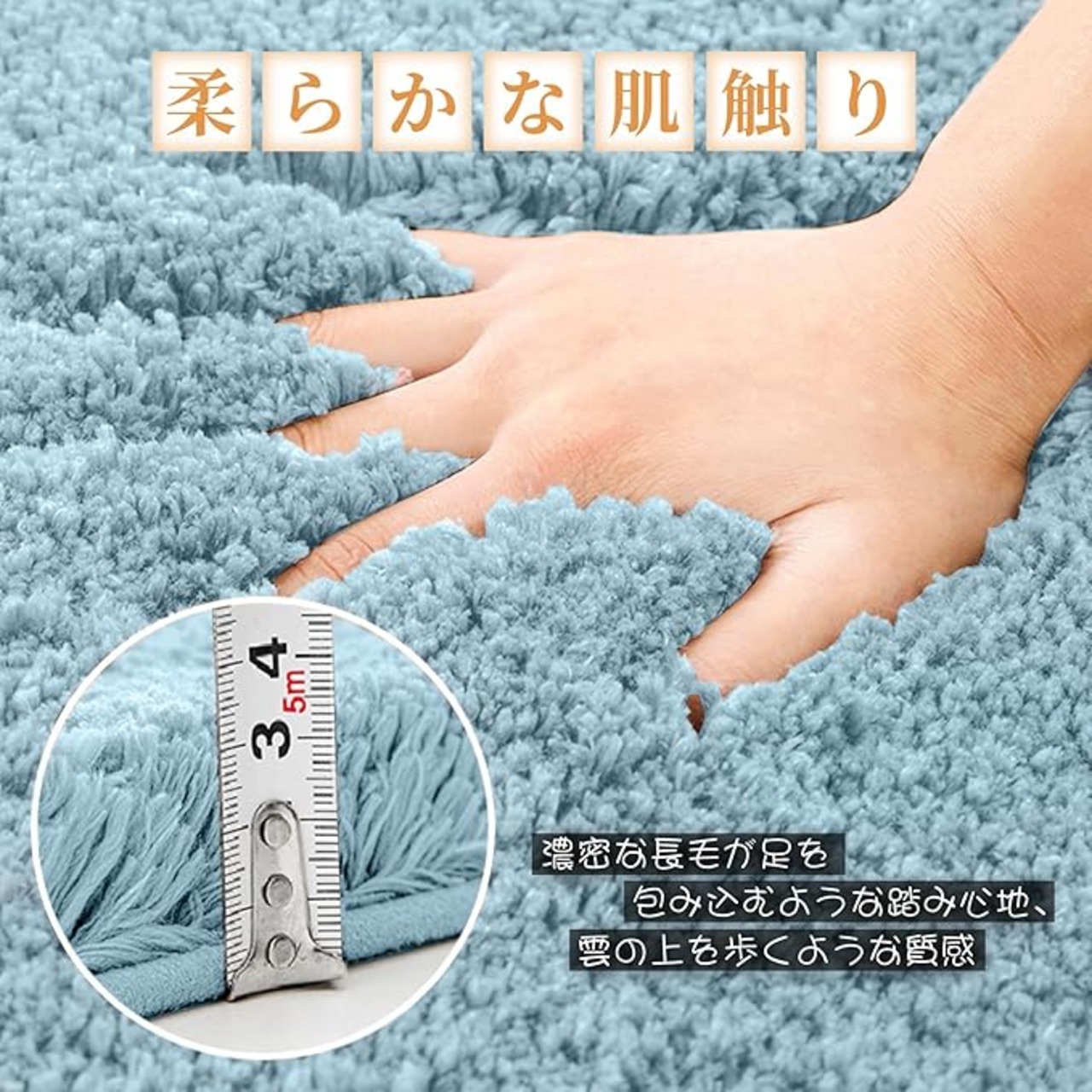 【ふわふわ肌触り】バスマットの表地はマイクロファイバー素材を使用、柔らかな肌触り、濃密な長毛が足を包み込むような踏み心地、雲の上を歩くような質感で、足を非常に柔らかくサポートします。疲れた足を落ち着かせてくれます。