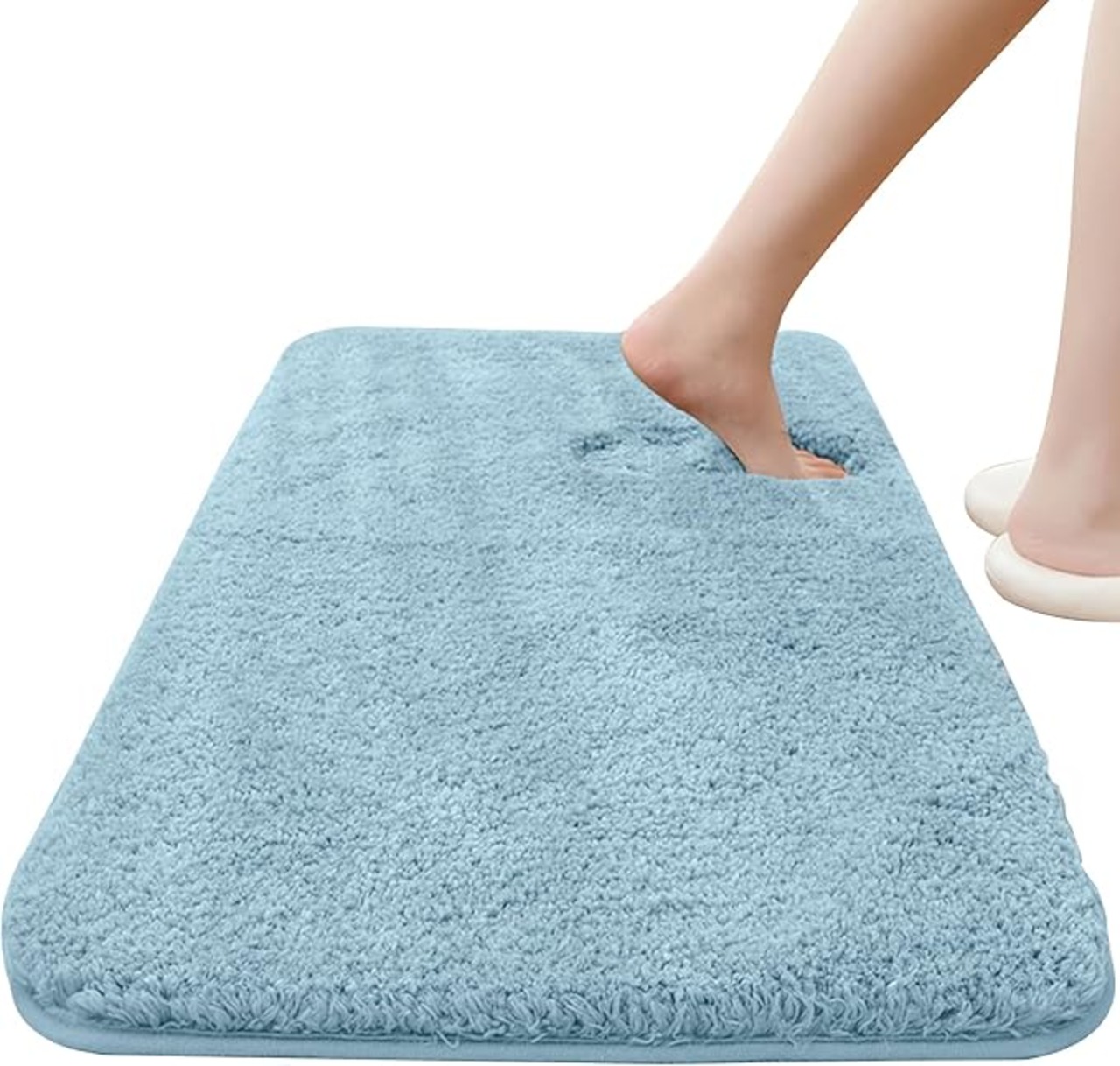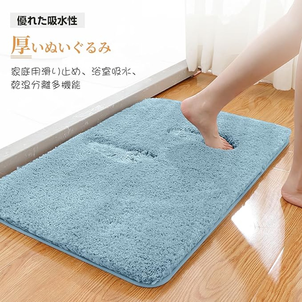 バスマット 速乾 吸水 お風呂マット 洗える 滑り止め 约50x80cm マイクロファイバー マット 足拭き 浴室 ソフトタッチ 丸洗い 洗濯 台所 脱衣場 キッチン 玄関やわらかマット (ブルー, 50*80cm)