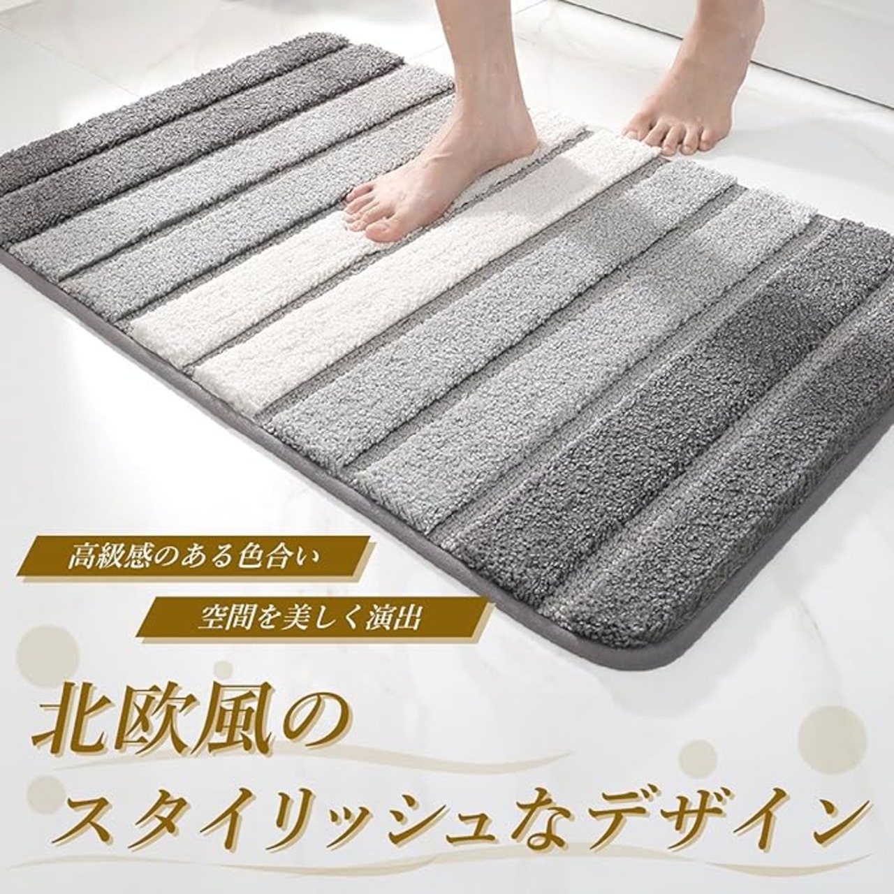 【スタイリッシュなデザイン】 北欧風のデザインが空間を明るくし、どんな場所にも美しい雰囲気をもたらします。浴室だけでなく、玄関、洗面所、脱衣所など多用途に使用できる万能マットです。高級感のある色合いで、インテリアに統一感を与えます。