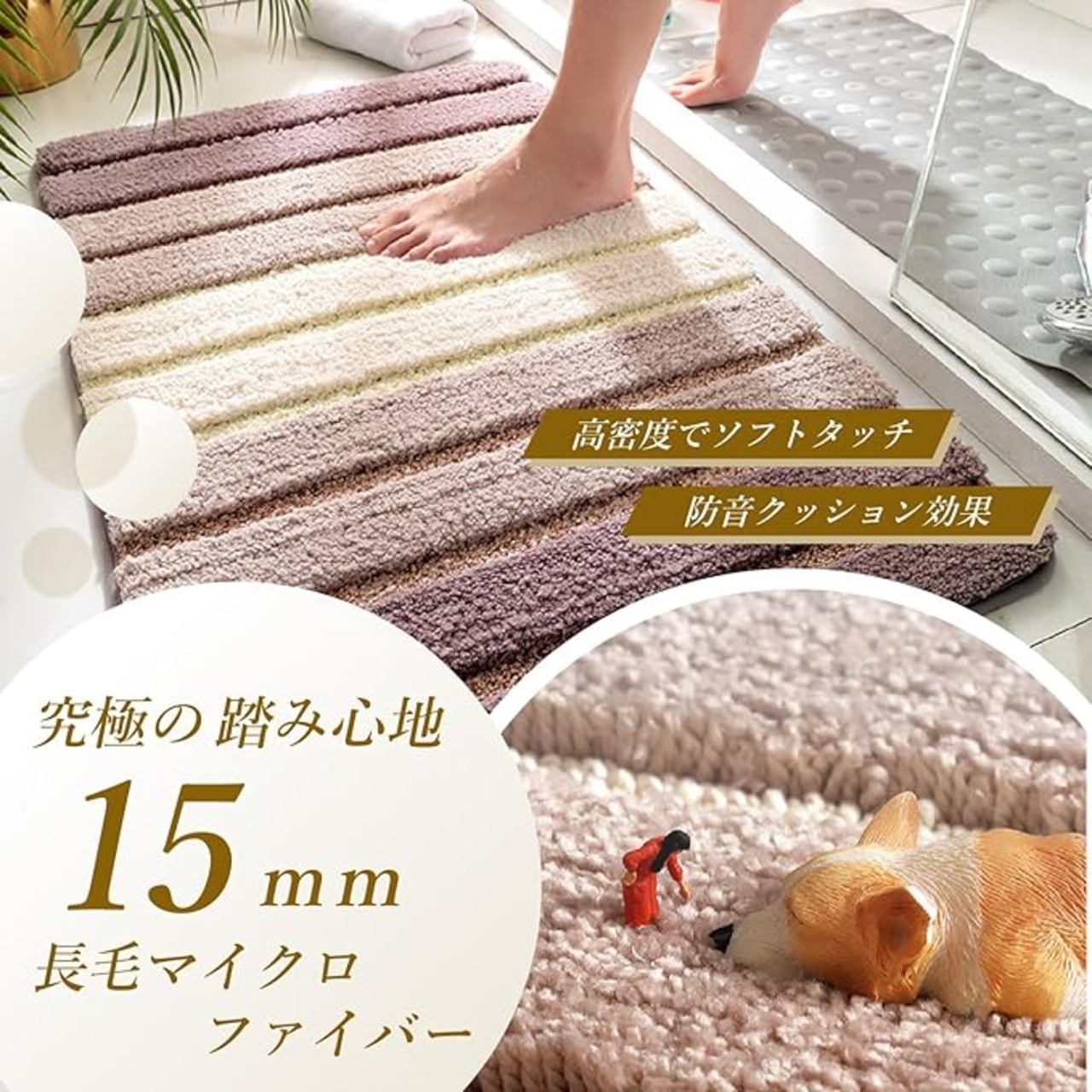 【究極の踏み心地】 15ミリの長毛マイクロファイバーが足の指を包み込むような贅沢な踏み心地を提供します。高密度でソフトなタッチが、冷たい床からつま先を守り、厚手のクッションが疲れた足を癒します。まるで雲の上を歩いているかのような感覚を体験できます。また、防音クッション効果もあるため、快適に使用できます。