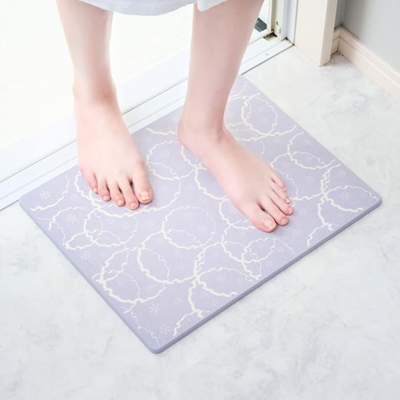 日本製 珪藻土 なのらぼ 足快バスマット 加賀友禅 吸収 速乾 バスマット 風呂 浴室 (コンパクト 雪輪 34cm 43cm 0.9cm)
